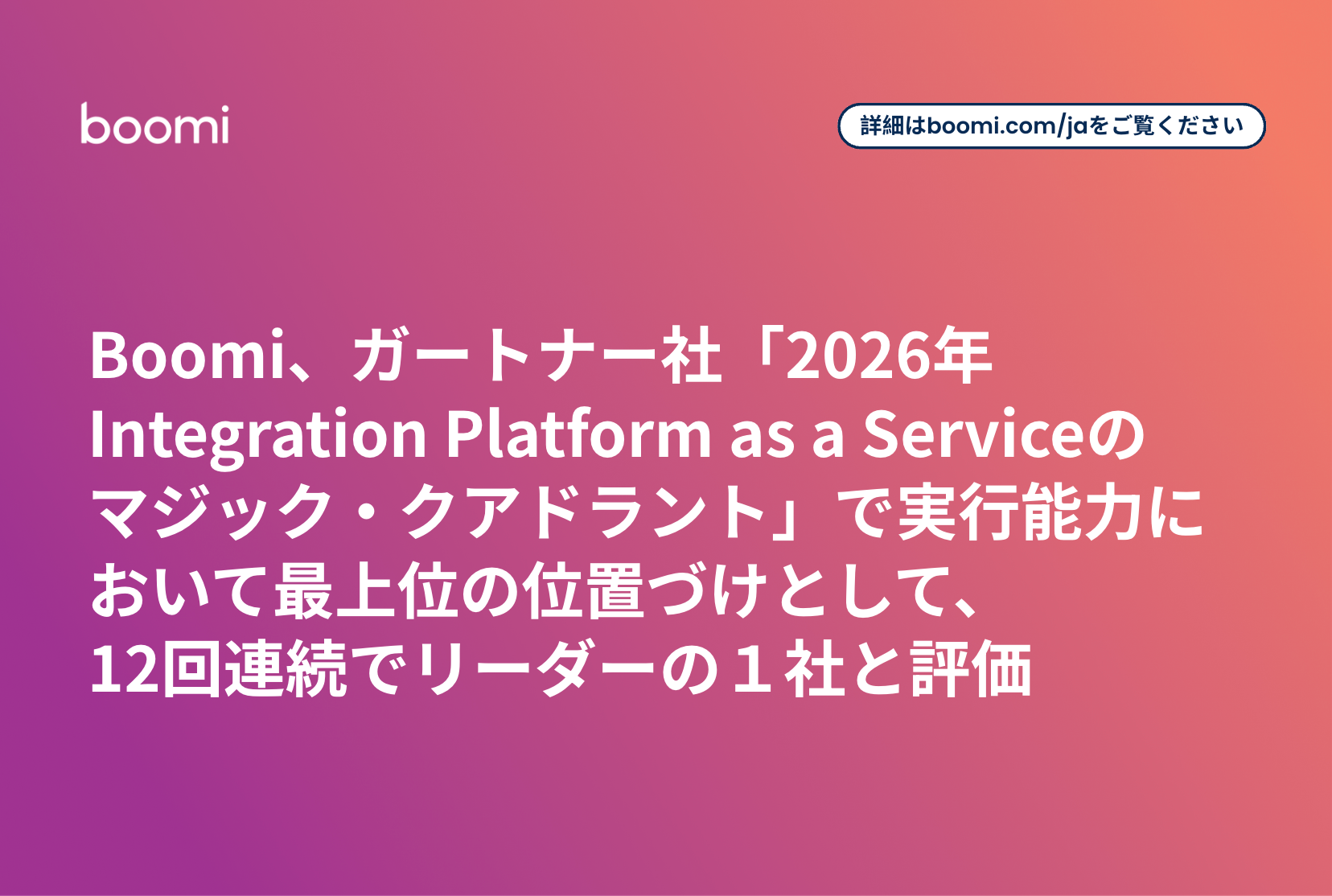 Boomi、ガートナー社「2026年Integration Platform as a Serviceのマジック・クアドラント」で実行能力において最上位の位置づけとして12回連続でリーダーの1社と評価