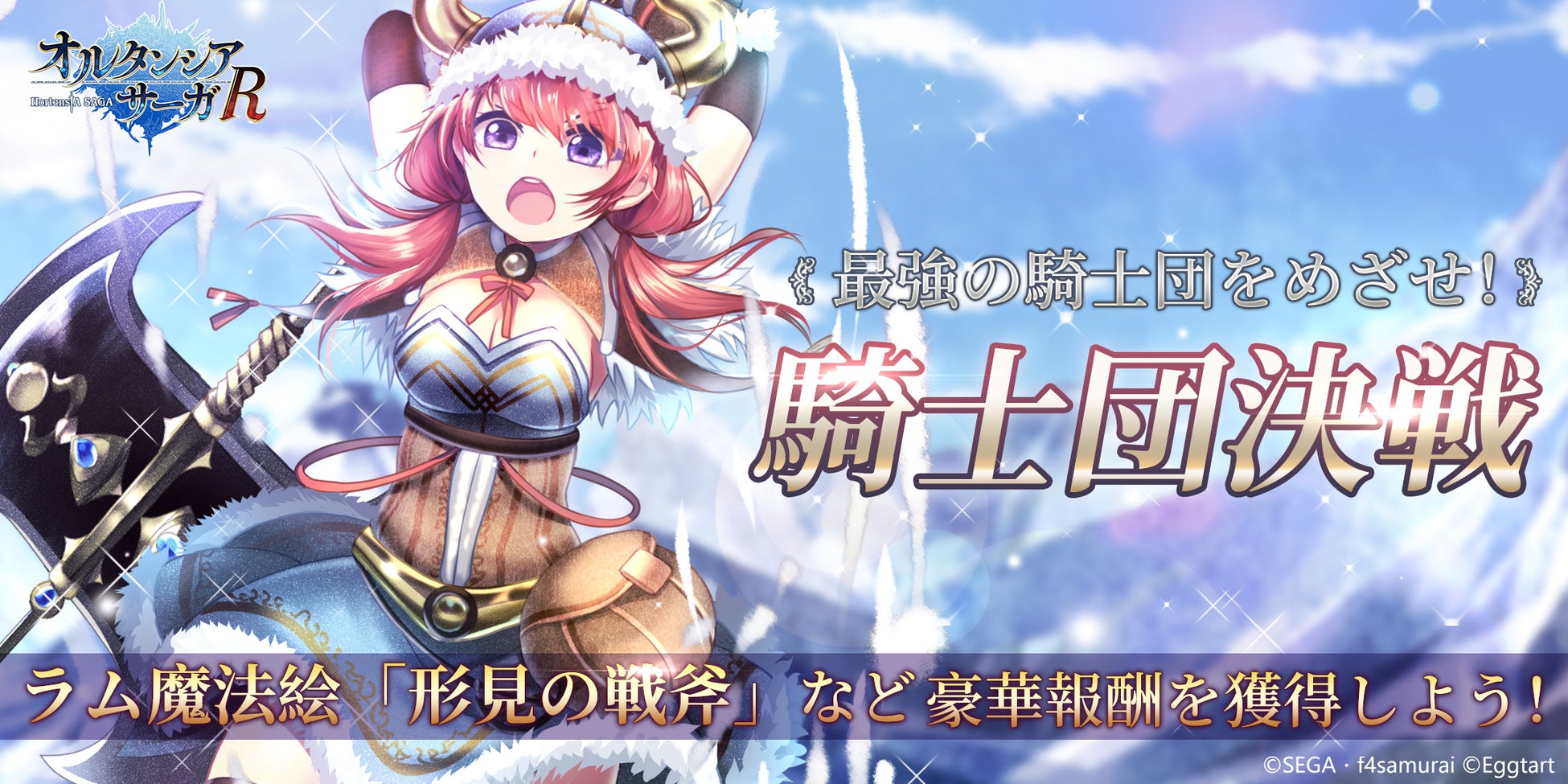 “騎士団決戦”とは、約2週間の期間で予選、グループリーグ、トーナメントを経て、オルタンシア最強の騎士団を決定するイベントです。