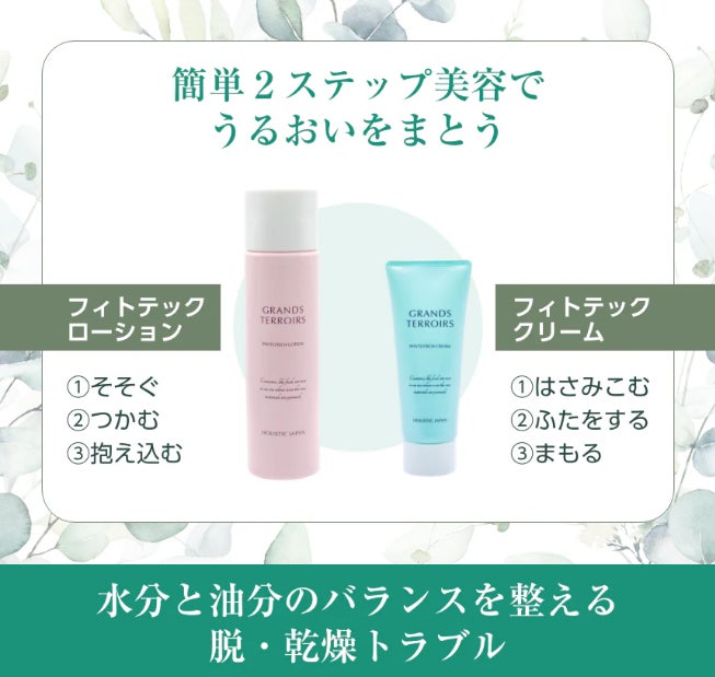 安倍佐和子氏監修で生まれたオリジナルのスキンケア「グラン・テロワール」は、シンプルな化粧水とクリームの2アイテム構成。