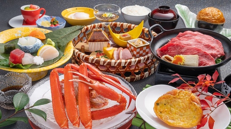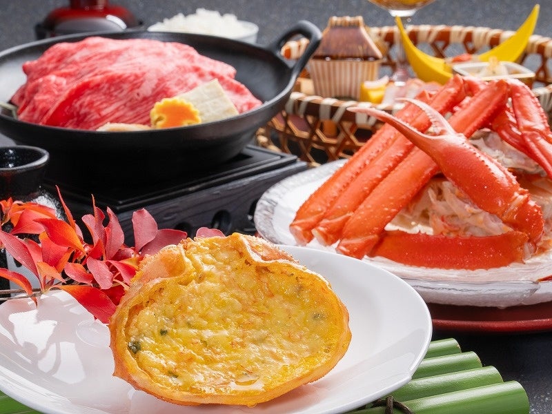 悠湯の郷ゆさでは、リニューアル1周年を記念し、「紅ズワイガニ」と「山形牛」を一緒に楽しめる特別プランを販売いたします。
