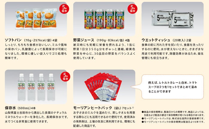 また、被災時に陥りやすい野菜不足を防ぐため、美味しさだけでなく栄養バランスの取れた非常食を厳選。開封後すぐに食べられる商品や甘味もセットに加え、被災状況や気分に合わせて食べるものを選ぶことができるようになりました。