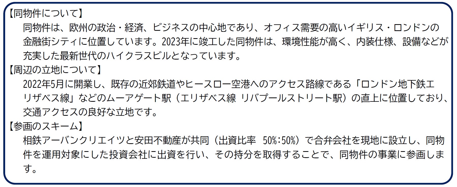 相鉄アーバンクリエイツと安田不動産で合弁会社を設立し、イギリス・ロンドンのオフィス事業に参画