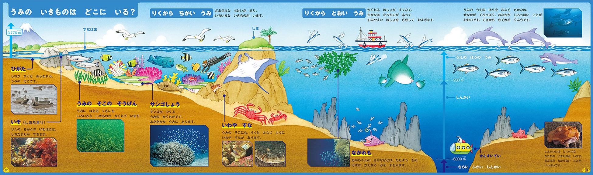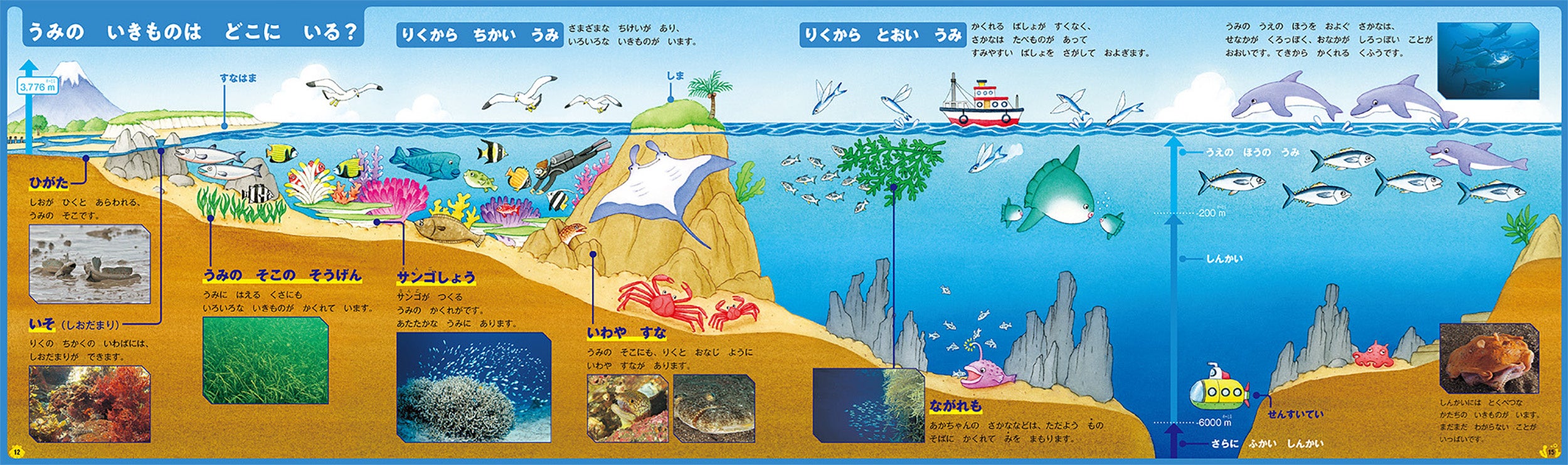 - POINT② 特集ページと見開きグラビアページで、海の生き物や世界がもっと知れる。