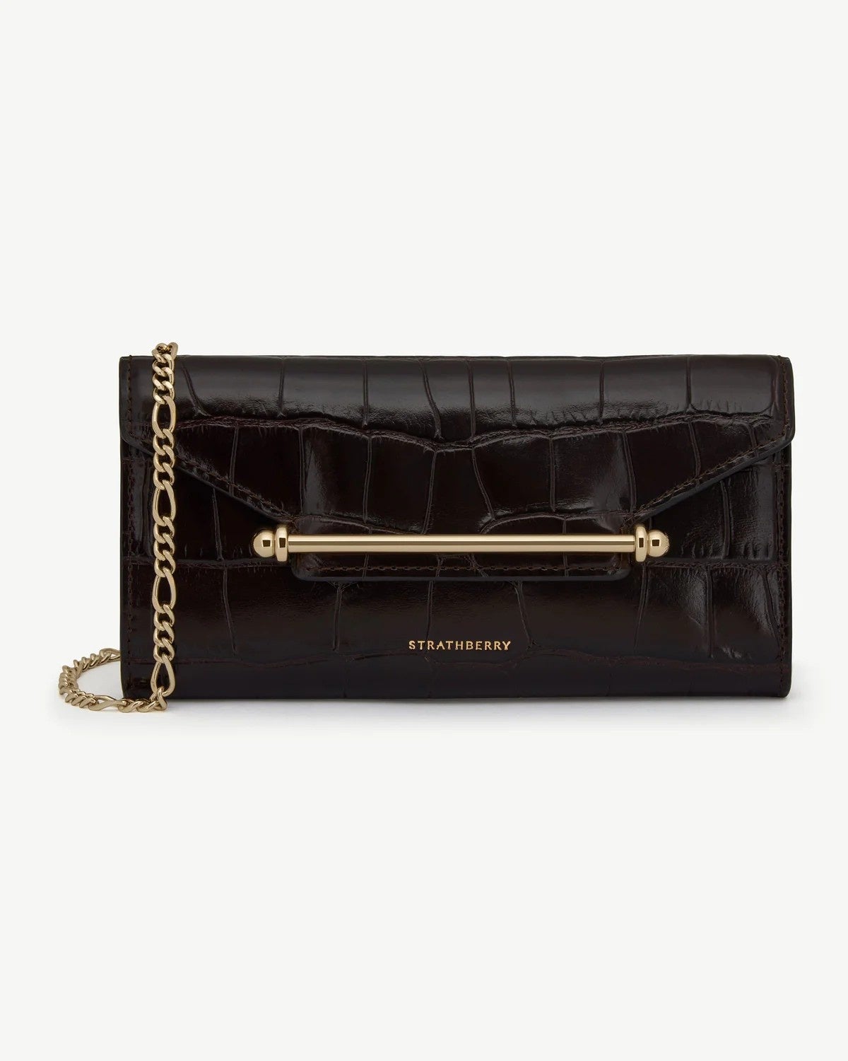 「Multrees Chain Wallet」は、STRATHBERRYを代表する人気モデルのひとつで、コンパクトで洗練されたシルエットと実用性を兼ね備えています。取り外し可能なチェーンストラップにより、クラッチバッグとしてもクロスボディとしても使用でき、デイタイムからイブニングまで幅広いシーンで活躍します。