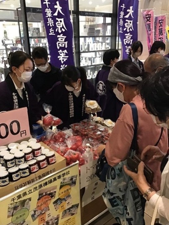 ペリエ千葉とJR千葉駅は地元の学生活動を応援し、生産から流通までを学ぶ課外実習の一環として、高校生が生産した農作物や加工品を直接販売体験の機会を創出することで、お客さまに生徒の活動を知っていただき地域の活性化に繋げています。