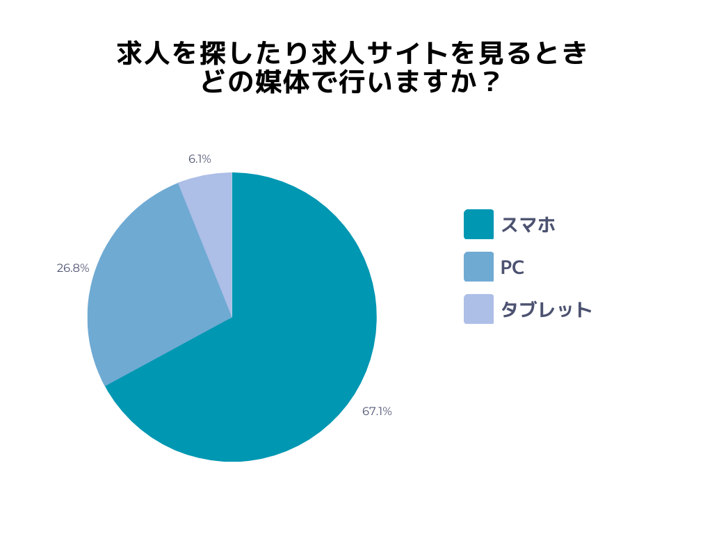 求人を探したり求人サイトを見るときに使用している媒体は、スマホが67.07%とこちらもほぼ予想通りの結果になりました。