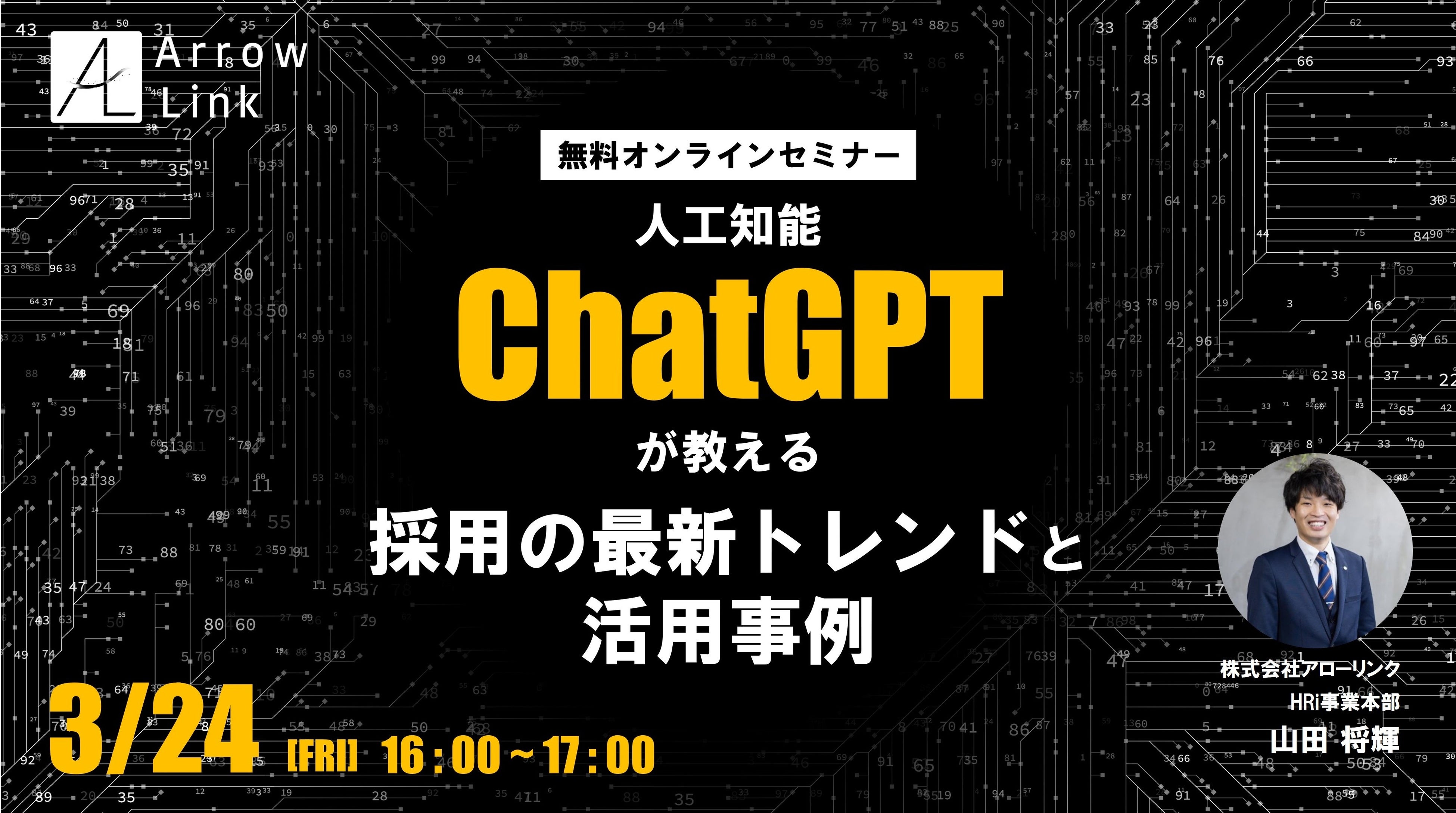 「人工知能ChatGPTが教える、採用の最新トレンドと活用事例」と題し、ChatGPTを活用した新たな採用手法についておつたえします。