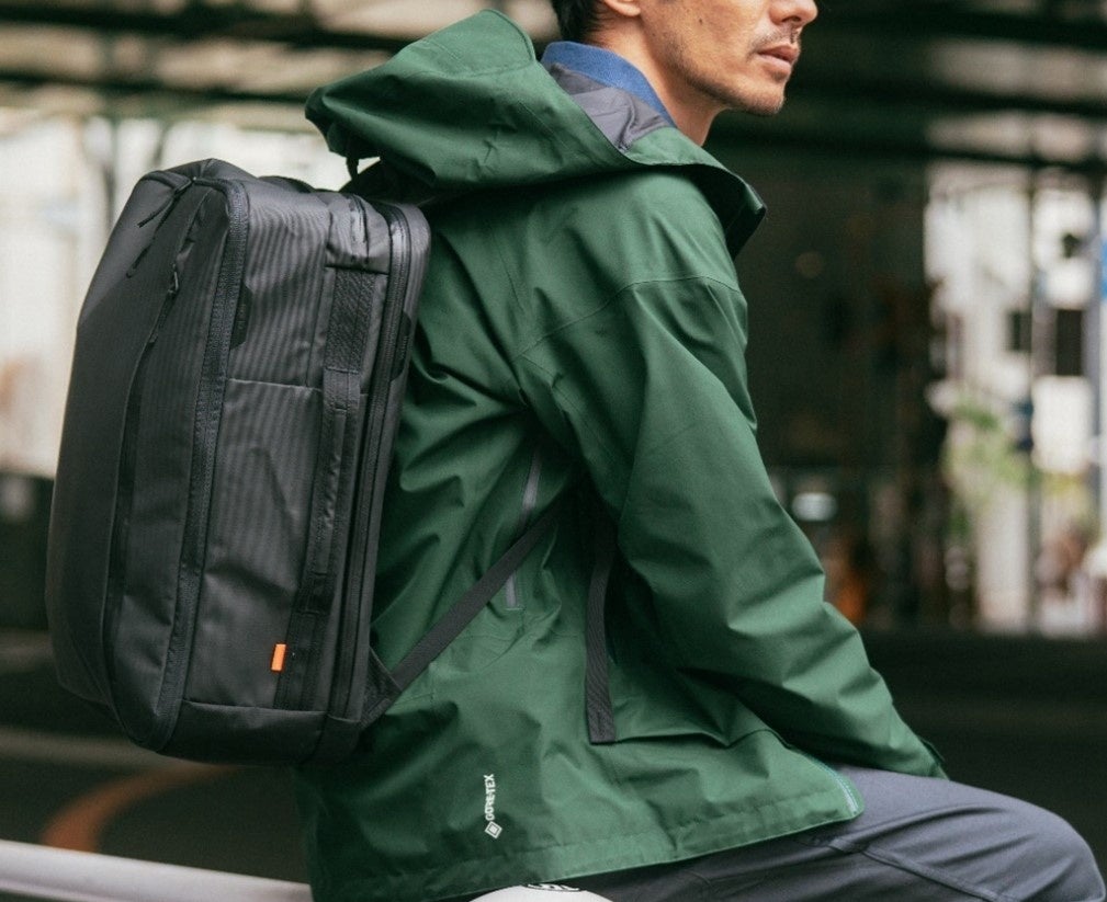 From Work To Climbを体現するバックパック「Seon Transporter」。今年は新色の「Savannah」が追加。コンパートメントが「Work」スペースと「Climb」スペースに分かれており、収納する目的と物に合わせた設計になっています。また、ショルダーストラップには登山用でも使われるEVAパッドが使用され、重たい荷物を担いでも疲れにくい仕様になっています。背面には、目の細かいストレッチ生地を使用することで、スーツなど衣類との摩擦も少なく衣類が痛みづらい所もポイントです。PCを持ち運ぶ機会の増えた昨今では、背負いやすさと収納力の高さから男女問わず人気のモデルとなっております。