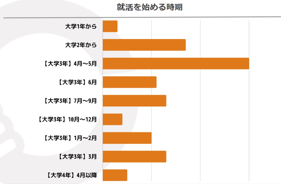 一般的にインターンシップ解禁と言われる『大学3年生の6月よりも前』に就活を始める学生は全体の約47.1%と半数近くの学生が就職活動にて活動していることが判明しました。