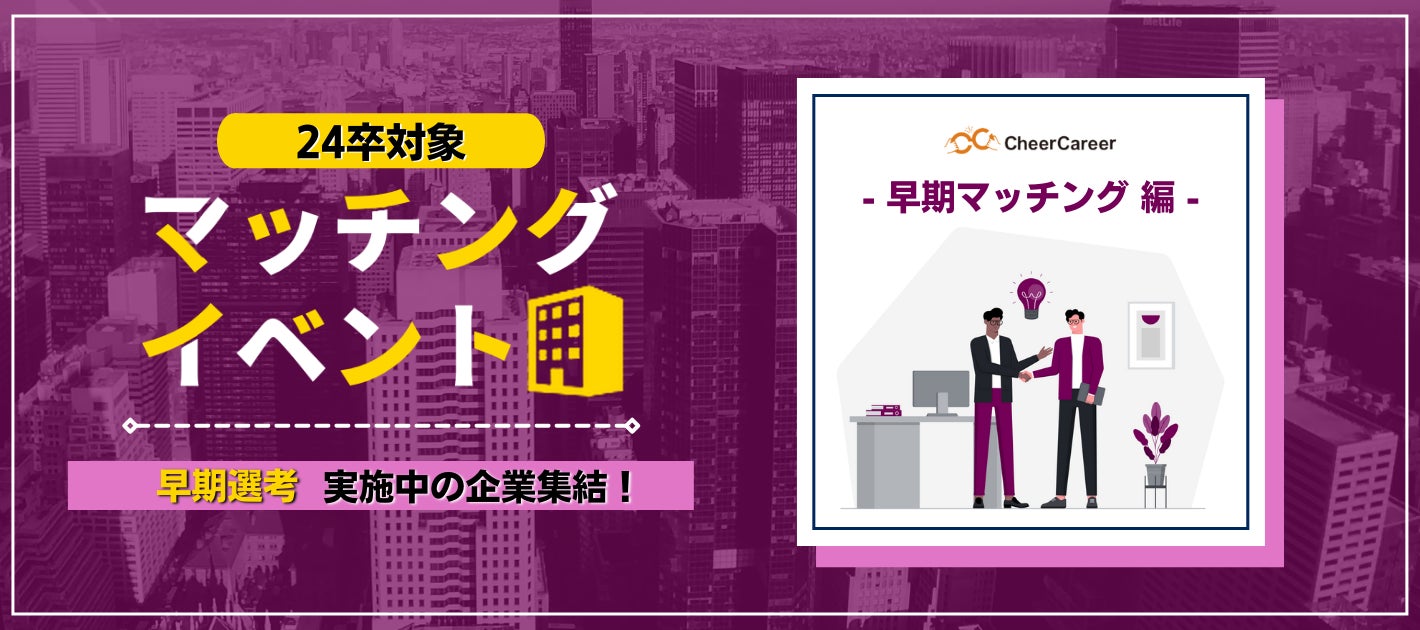 ベンチャー企業と学生をつなぐ就活サイト「CheerCareer(チアキャリア)」を運営する株式会社Cheer(本社:東京都新宿区、代表取締役:平塚ひかる)は、24卒の登録学生を対象としたマッチングイベントのリリースが決定しました。