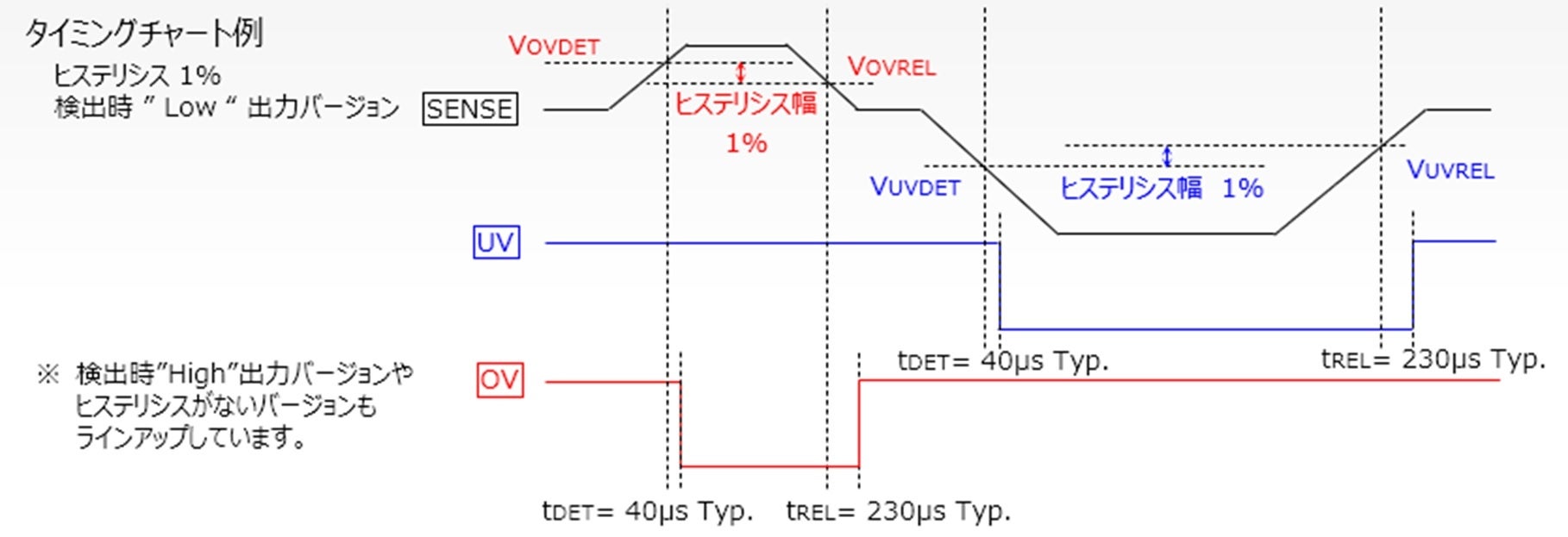 2. 検出・解除電圧を個別指定可能でヒステリシス幅を調整可能(「NV3600」シリーズ)