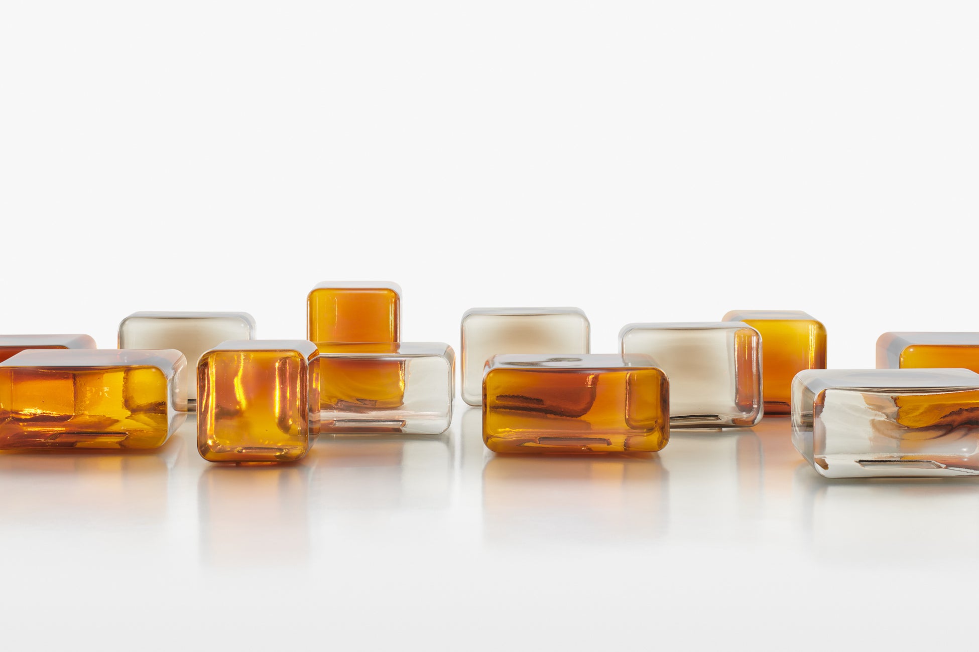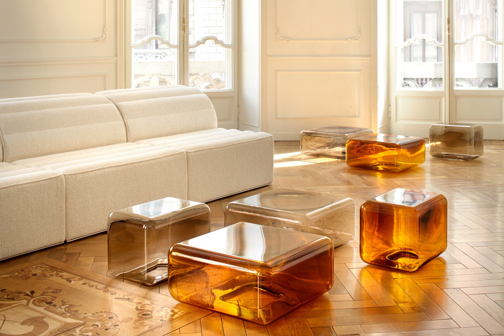 ミニマルなフォルムで洗練さを捉えたシンプルなデザインながら、物質、光、色が融合するLOKUMテーブルは、吹きガラスの熟練した職人技によって引き立てられたコレクションです。