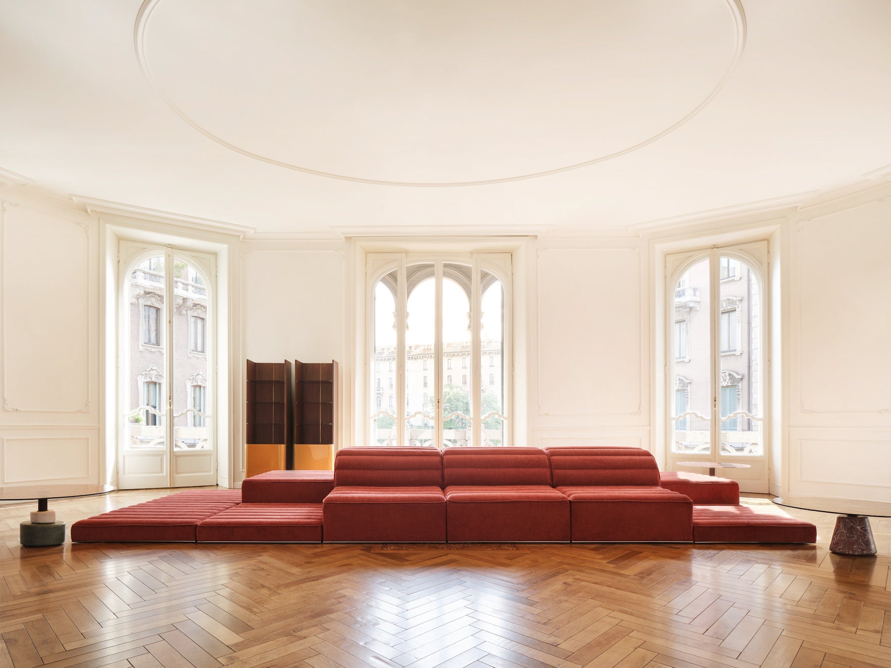 1970年代のモジュールソファのアイコンとして知られるLIFEソファを、現代的なライフスタイルに合わせてリデザインした作品です。直線的なフォルムとボリューム感のあるクッションが、シンプルながらもエレガントな印象を与えます。自由に組み合わせができるモジュール構成により、空間の広さや用途に応じたアレンジが可能です。