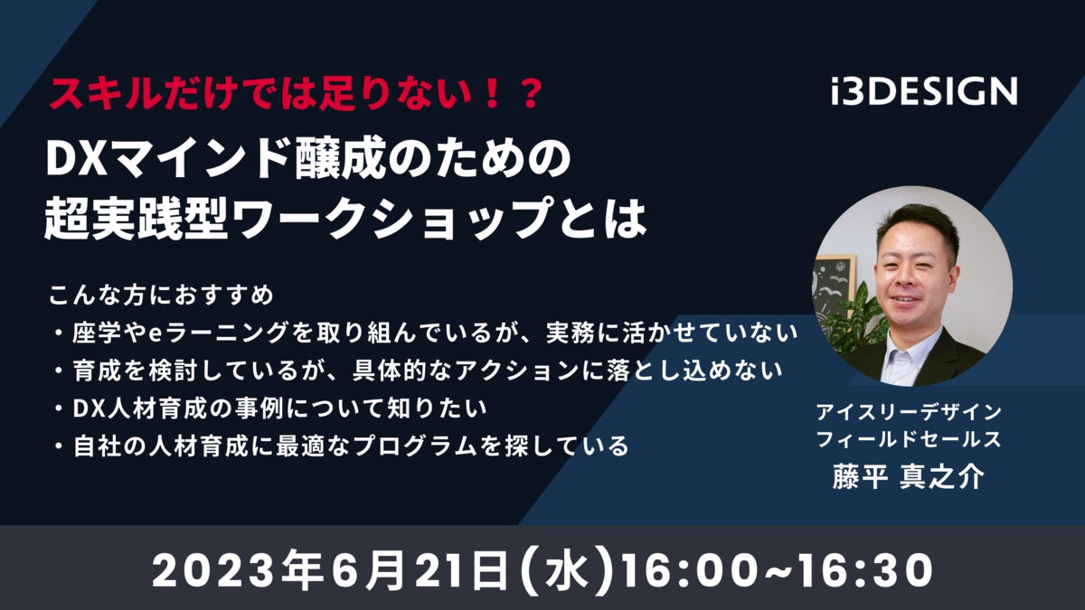 【6月21日(水)16時開催】「スキルだけでは足りない!?DXマインド醸成のための超実践型ワークショップとは」をテーマにオンラインセミナー開催