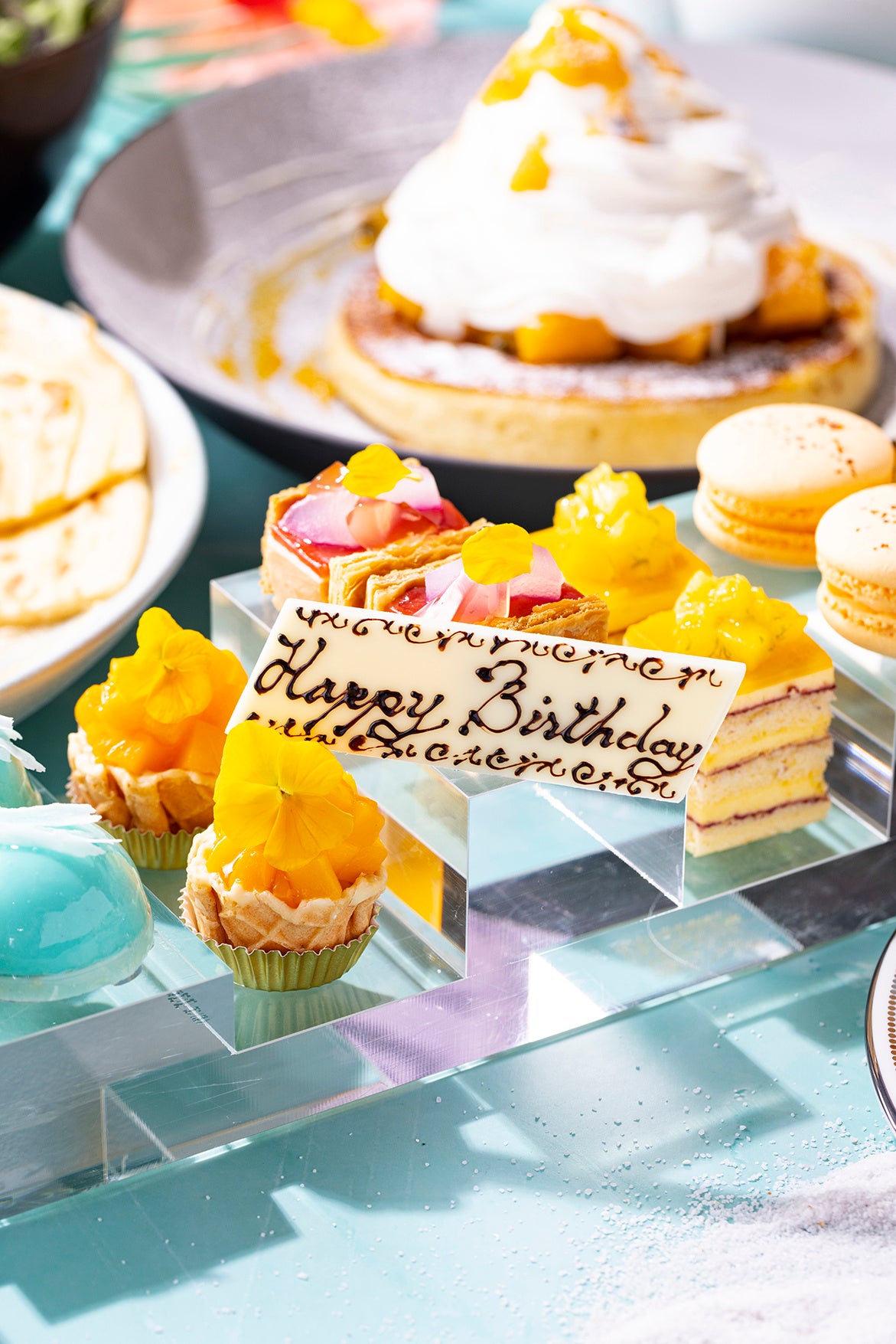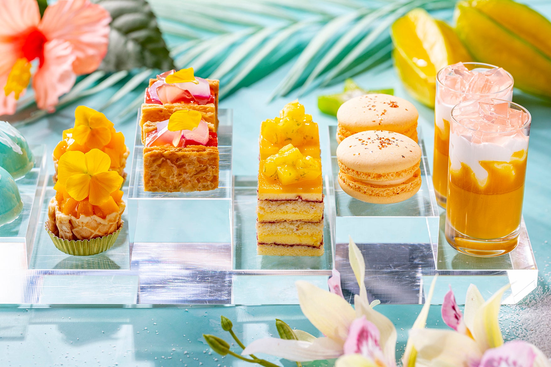 今年は、6月16日(金)に発売する限定アイテムのテーマ”トロピカルドリーミーパラダイス”からインスピレーションを受け、夏気分高まる “マンゴー&パッション ホワイトフローラル”の香りをイメージしたスイーツ9種をお届けします。マンゴーやパッションフルーツなど、南国の楽園を頬張る魅惑のアフタヌーンティーは、ジューシーなフルーツとミントやライムのアクセントがなんとも爽やか!