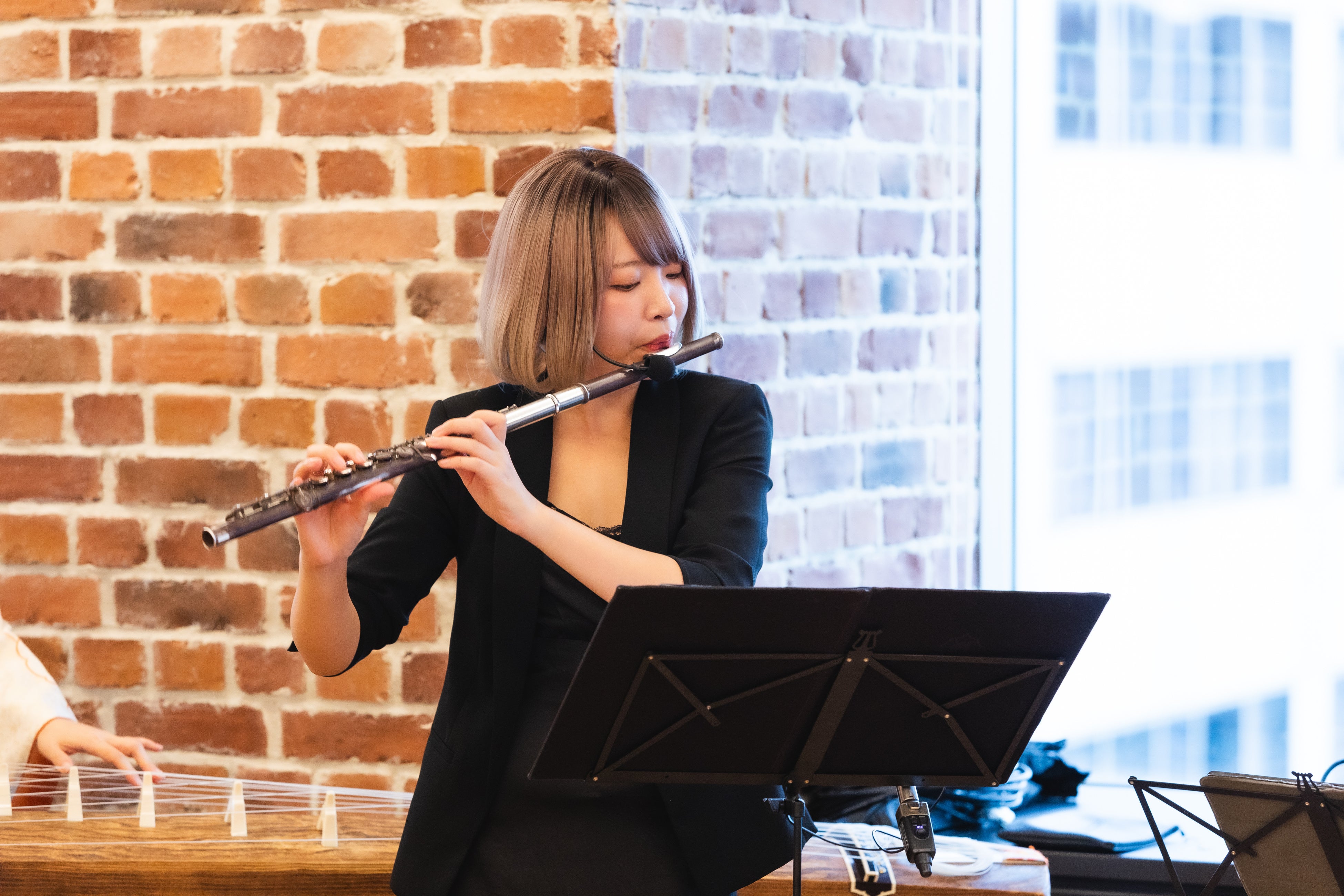 式典の冒頭では、ミュージシャン・世古美月氏が特別ライブパフォーマンスを行い、フルート・エレキベース・キーボード・琴・和太鼓による和洋折衷のアンサンブル曲「爽秋」を披露。