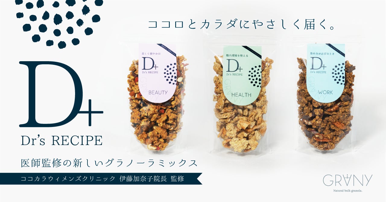 一般社団法人日本福祉協議機構(本社:愛知県名古屋市天白区井の森町)が運営する、障がい者就労支援B型×自然派グラノーラ専門バルクショップは、医療法人アライフサポート『ココカラウィメンズクリニック』(https://cocokara-clinic.com/)伊藤加奈子院長と医学の視点から心と身体の健康を追求する新商品「Dr's RECIPE(ドクターズレシピ)」を共同開発。2023年12月26日㈫より栄マルエイガレリア店にて先行発売。