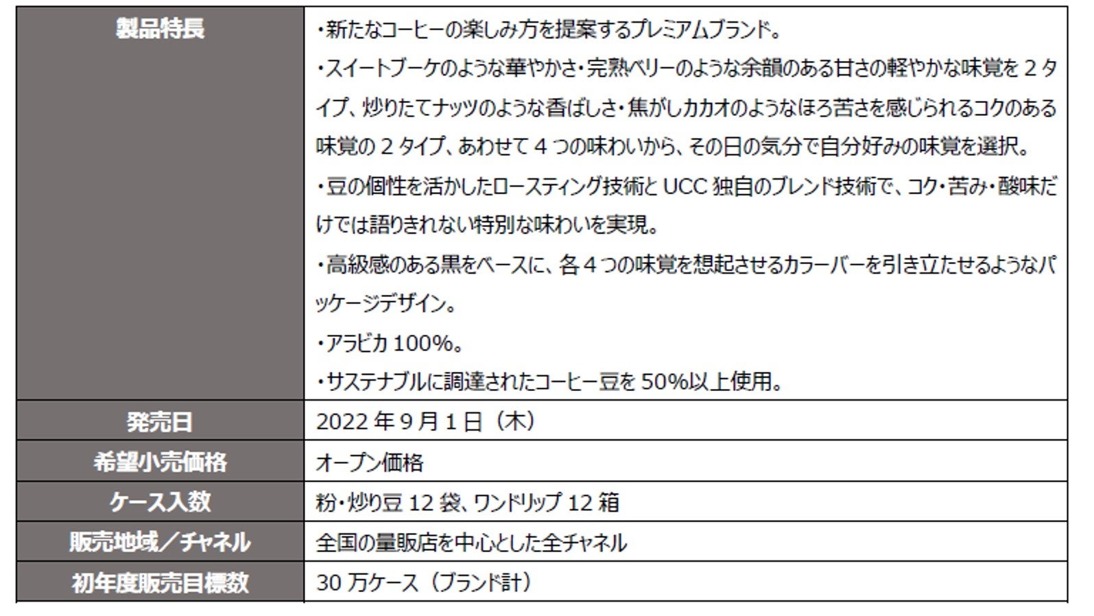 - 『UCC GOLD SPECIAL PREMIUM』製品概要