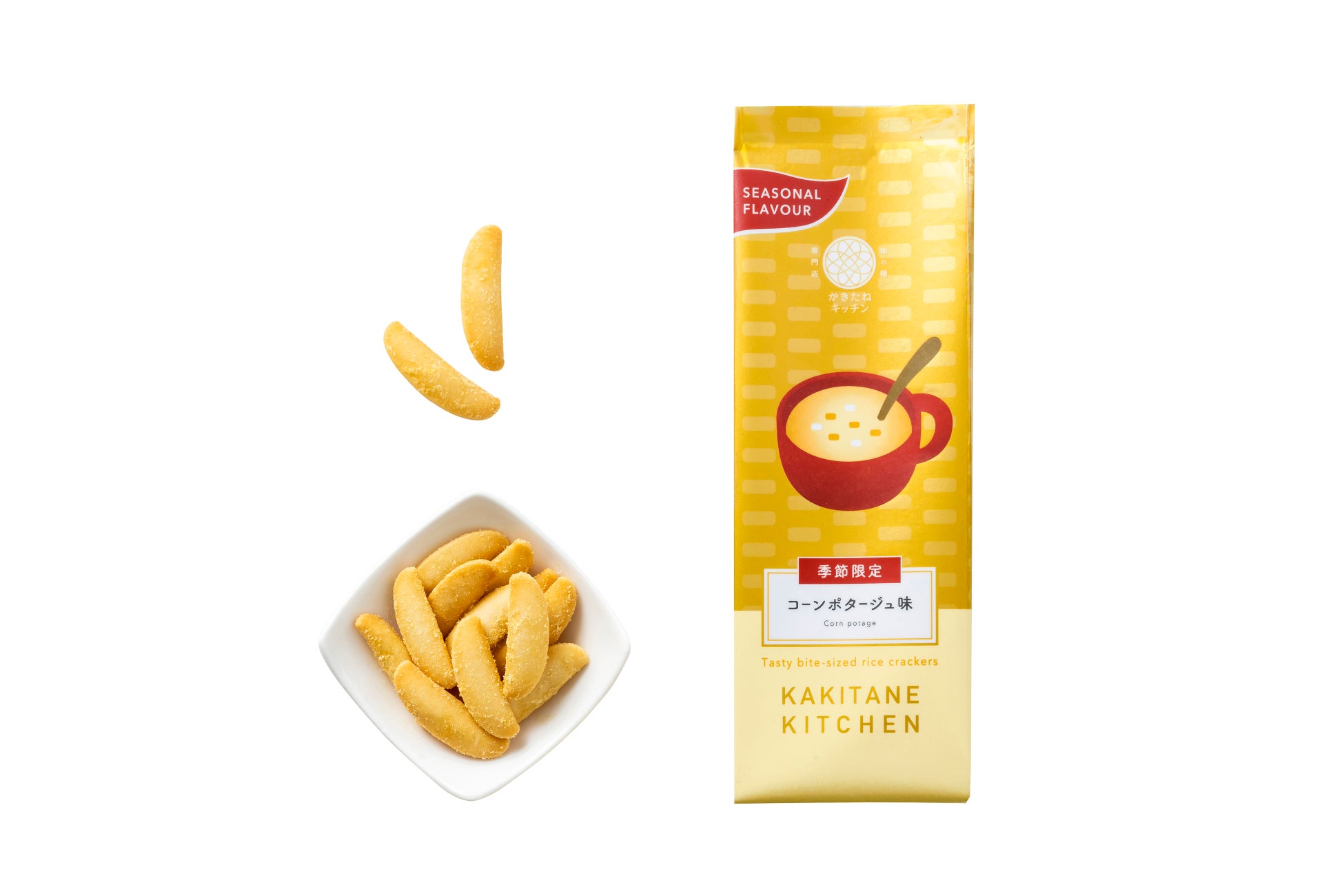 『かきたね コーンポタージュ味』は、寒い季節にほっこりと温かい気持ちをお届けいたします。