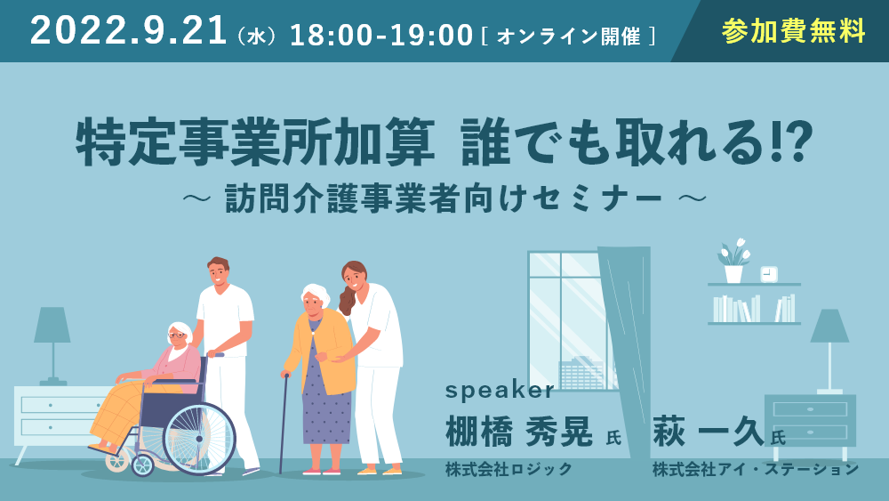 INEST株式会社の連結子会社である株式会社アイ・ステーションは、2022年9月21日(水)18時より「特定事業所加算誰でも取れる!?~訪問介護事業者向けセミナー~」をテーマに講師をお招きしてオンラインセミナーを開催いたします。