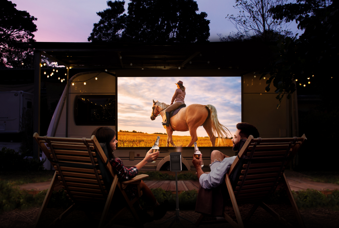 「Halo+」は、アウトドアや自宅など、さまざまなシーンで手軽に本格的な映像体験が楽しめるモデル。高輝度、フルHDの解像度、Harman Kardon製スピーカー搭載、バッテリー内蔵などが特長で、これからの夏のキャンプやレジャーシーズンにぴったりの一台です。