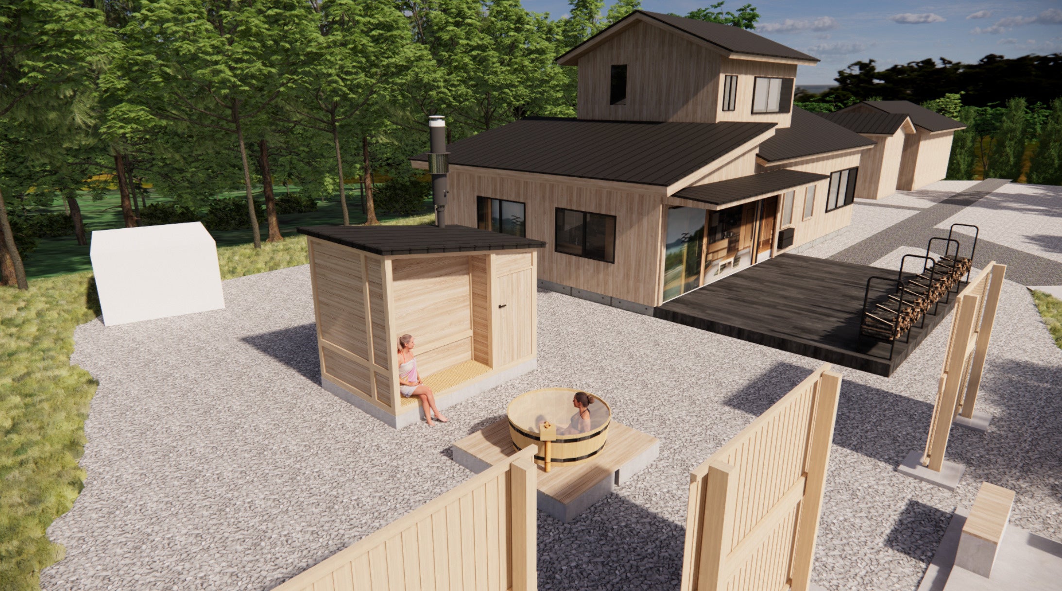 早速、熊野古道を歩いて泊まるには何が必要かハイカーを対象に調べたところ、「山歩きの疲労を癒やすための温泉がほしい」との声が複数上がりました。ただ、宿がある田辺市中辺路町高原地区は山の上にあるため、公共の水道が通っておらず、温泉を引くのは条件的に無理があります。そこで思いついたのがサウナ。熊野古道を数時間トレッキングして、サウナと水風呂に入って整い、翌日また古道の続きを歩く。これなら、当宿が掲げる”リトリート体験”にも当てはまる。そして、「整う」は「蘇り」と相通じる部分がある。「熊野古道における究極のリトリート体験は、サウナではないだろうか?」と気づき、それを次なるミッションに掲げました。
