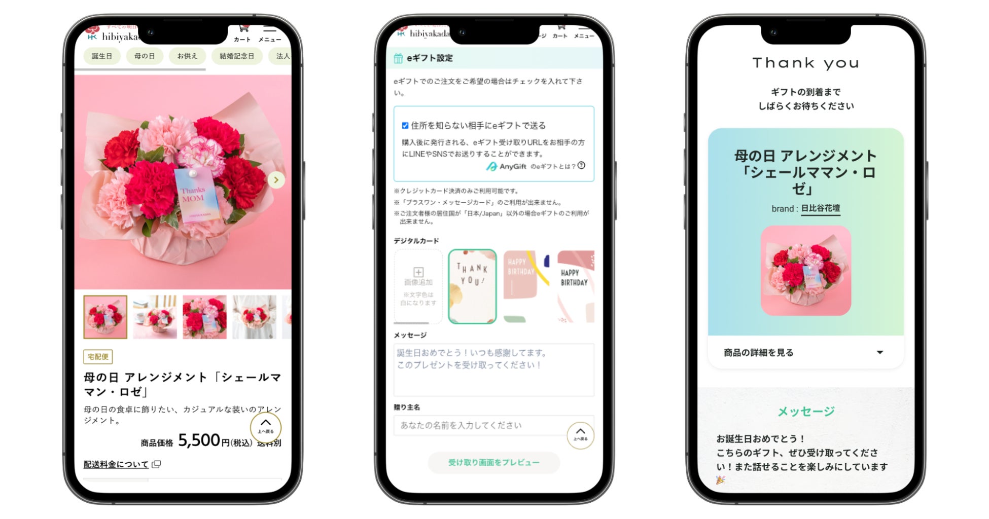 誕生日や記念日、そして母の日当日でも“すぐに・簡単に”ギフトとして贈れます。