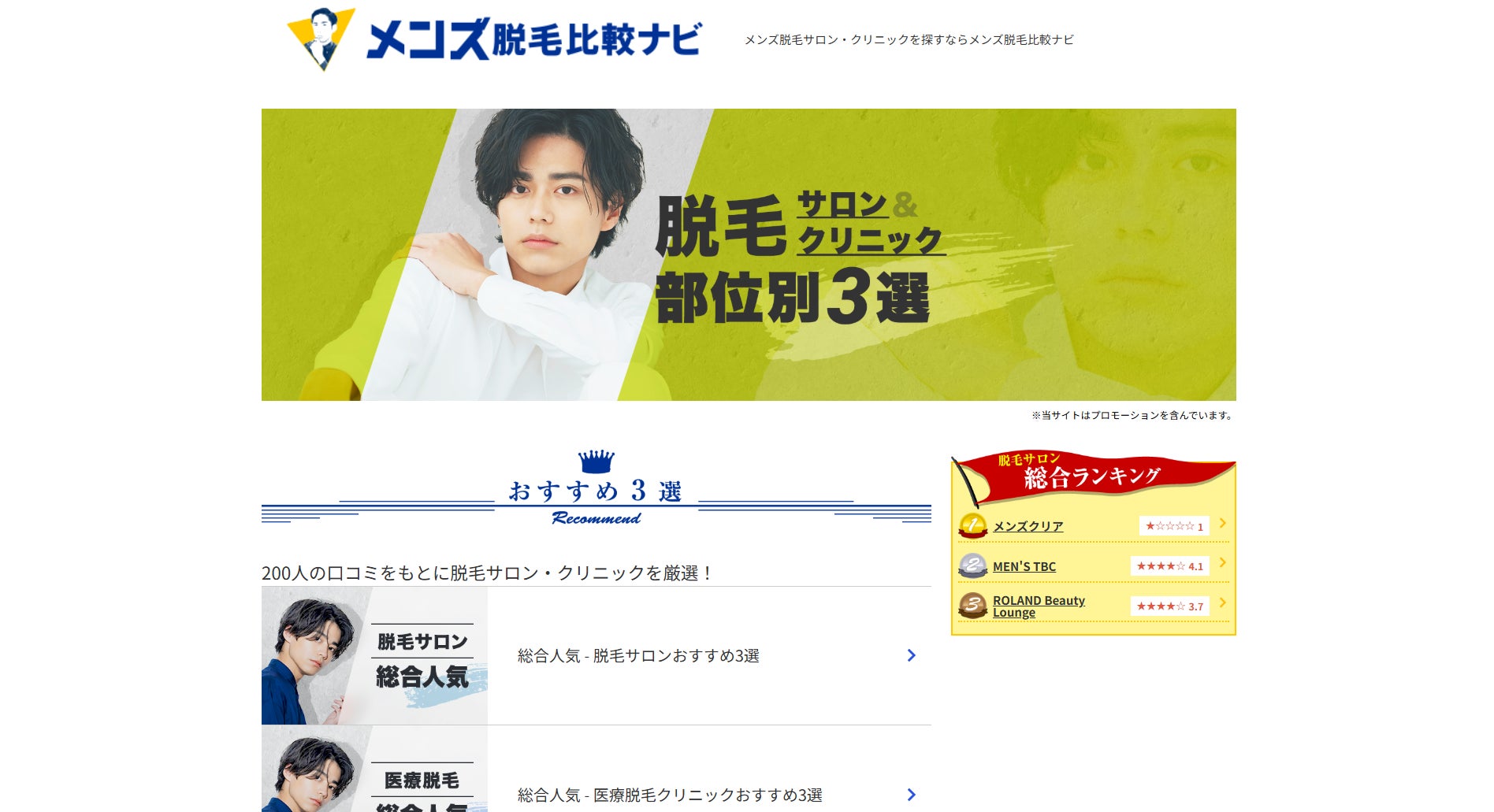 脱毛クリニック・サロンの選び方が分からない男性向けの比較サイト。「評判の高いところを知りたい」「高額にならないか心配」など、男性が抱える脱毛の悩みを解消するため、大手脱毛クリニック・サロンを徹底比較。