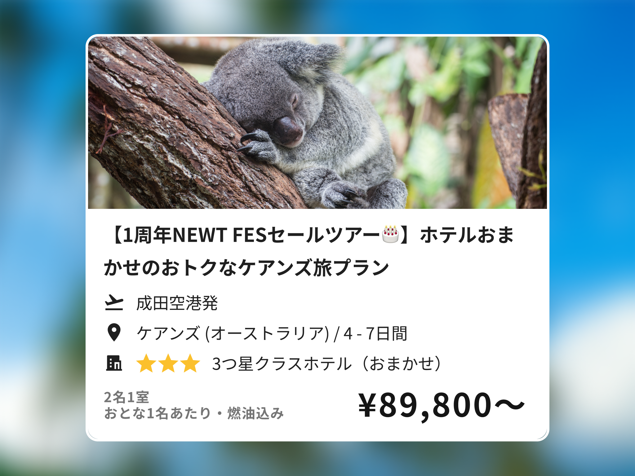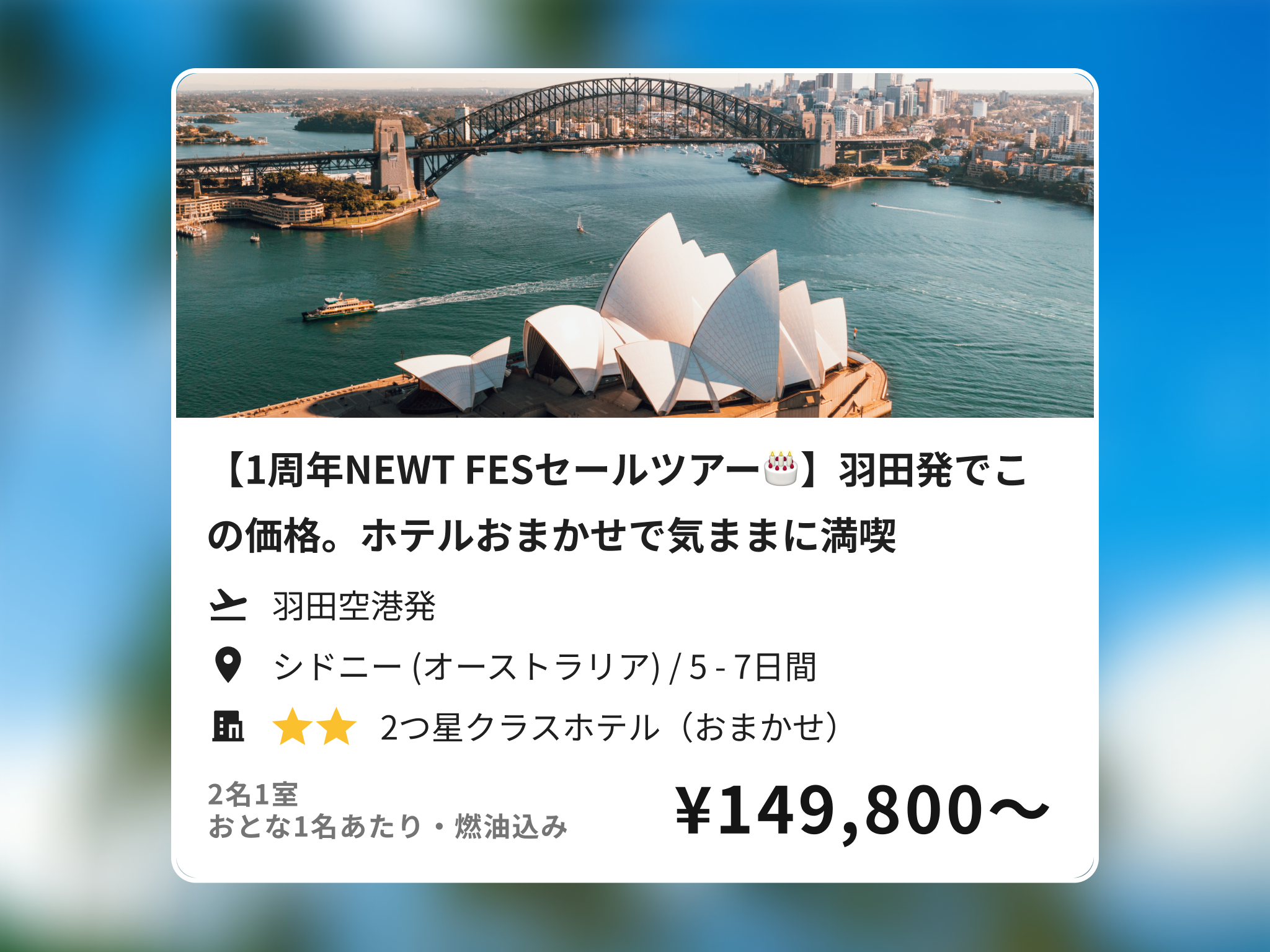 - 祝1周年!大感謝セール「NEWT FES」追加ツアー
