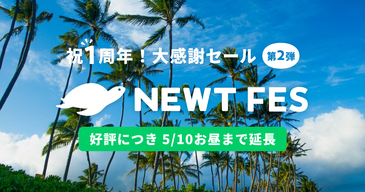 - 祝1周年!大感謝セール「NEWT FES」概要