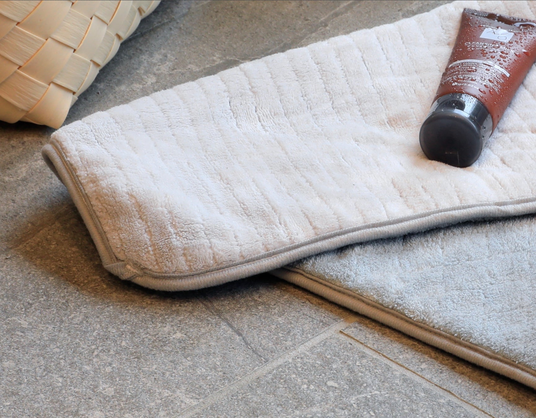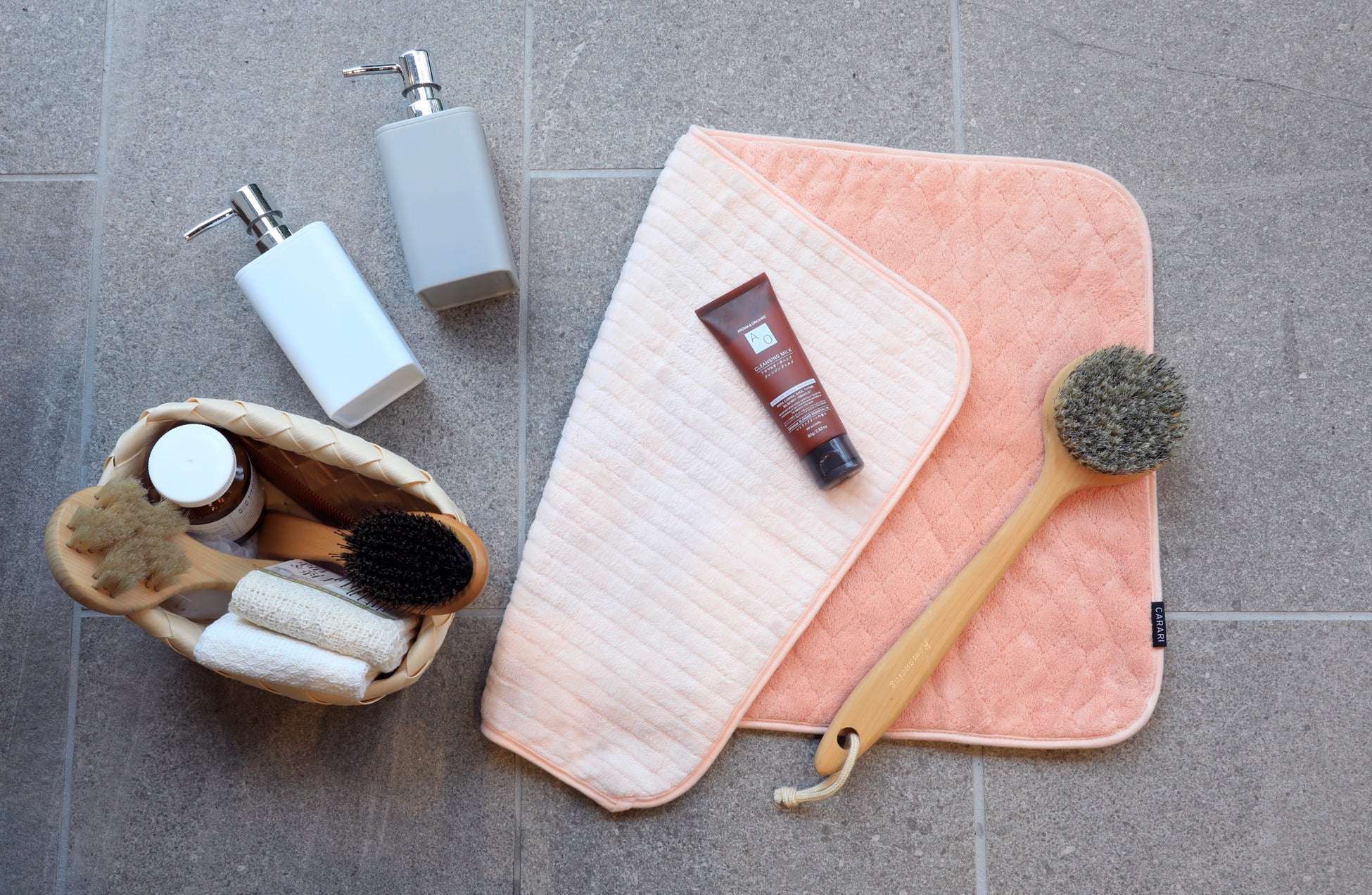 お風呂上がりの足に付いた水滴を、踏むだけでサッと吸水してくれます。