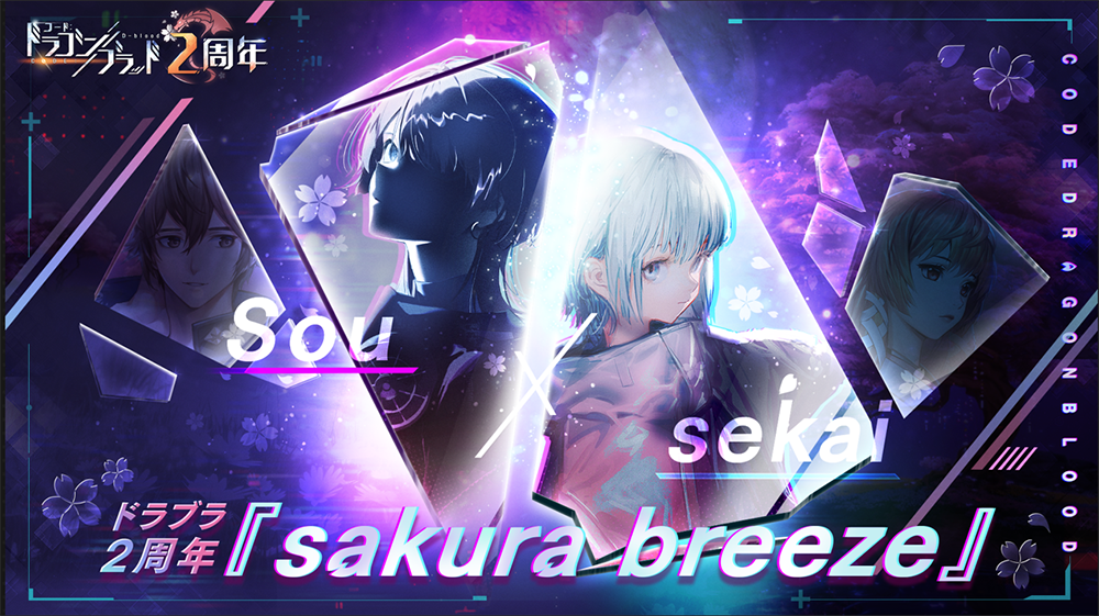 ドラブラ2周年を記念して制作された主題歌『sakura breeze』は、インターネットの世界を原点とするアーティストSouとsekaiがデュエット歌唱。ゲームの世界観や2周年のテーマと相まった、ファンタジーとパワーに満ちた楽曲に仕上がっています。