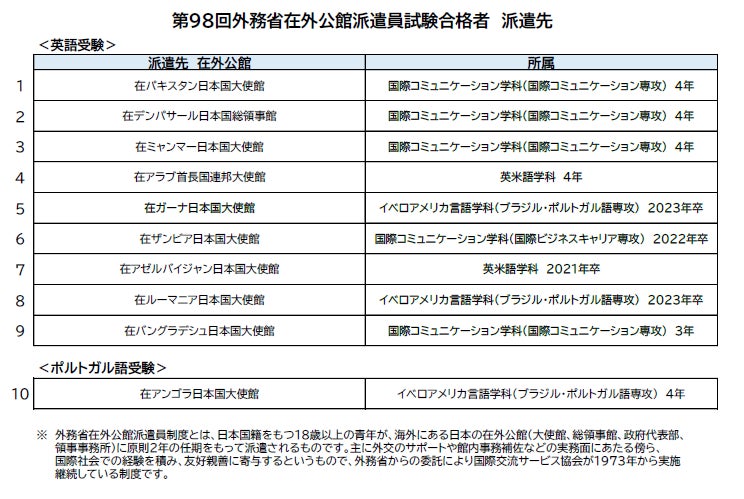 第98回外務省在外公館派遣員試験 神田外語大学から10人の学生・卒業生が合格