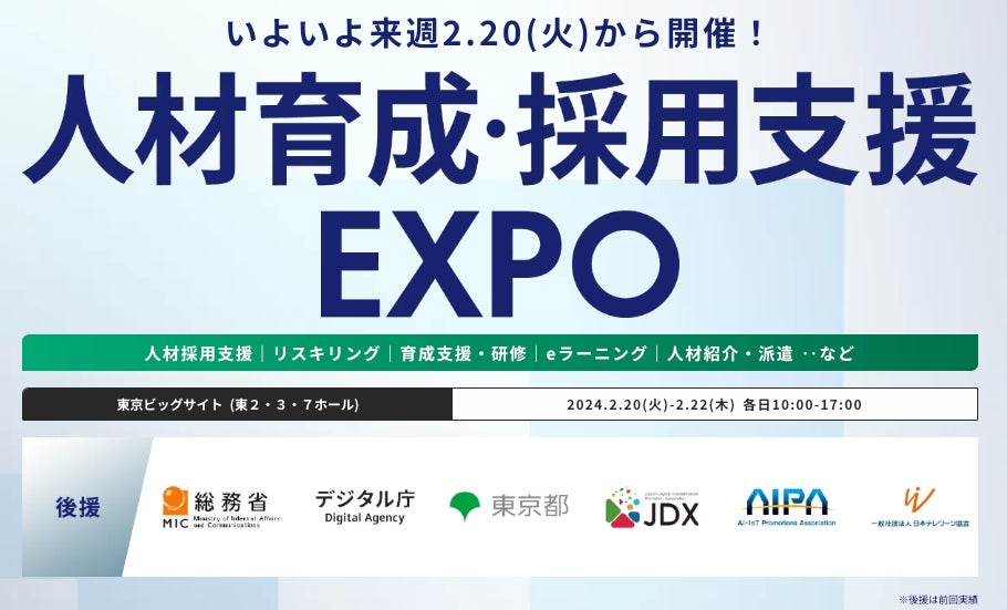 採用管理、採用支援、人材教育、リスキリング、アルムナイ、人材紹介・派遣、HRテックなど、「教育・研修」「採用支援」に特化した人事サービスが集う展示会です。