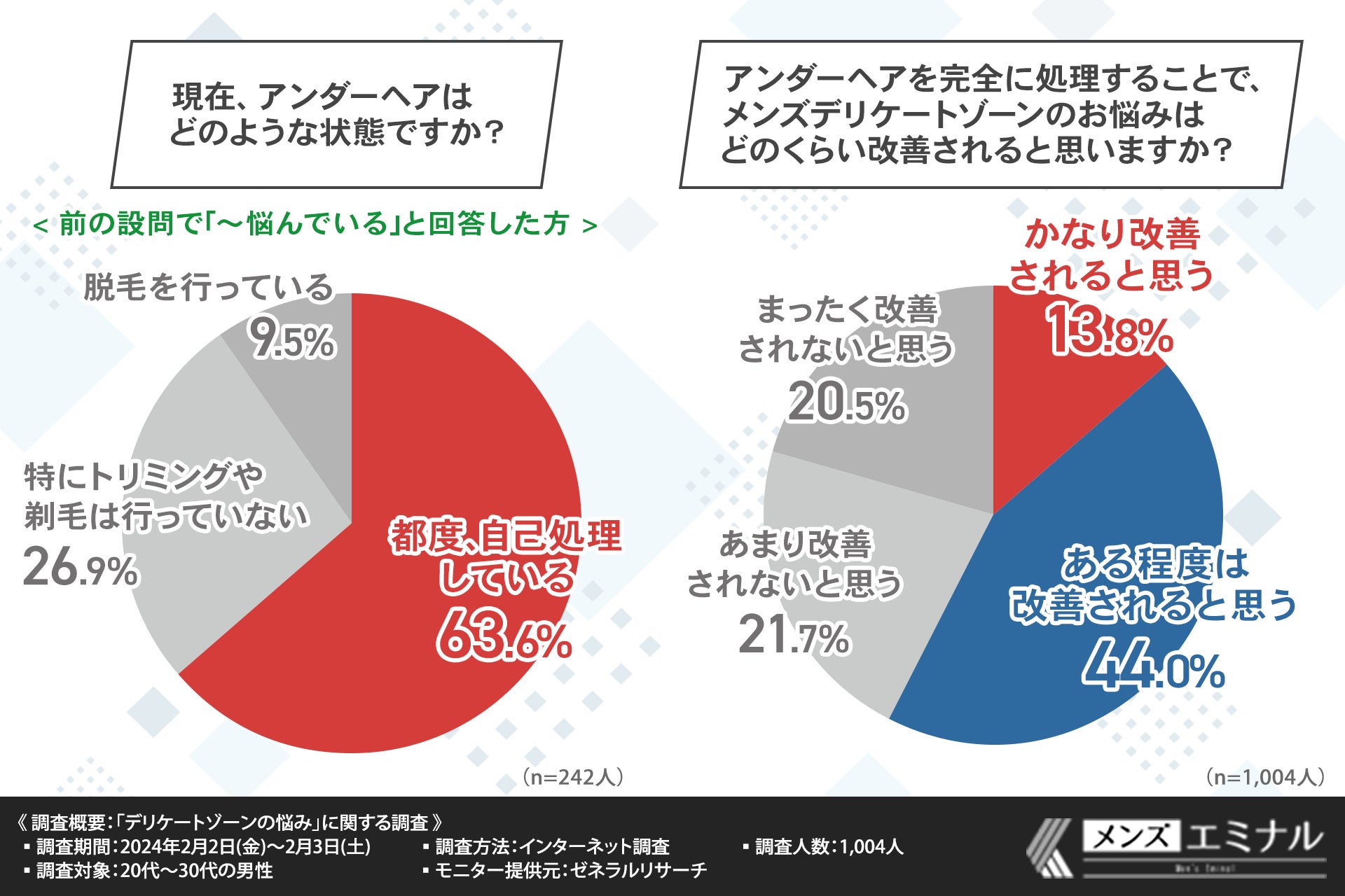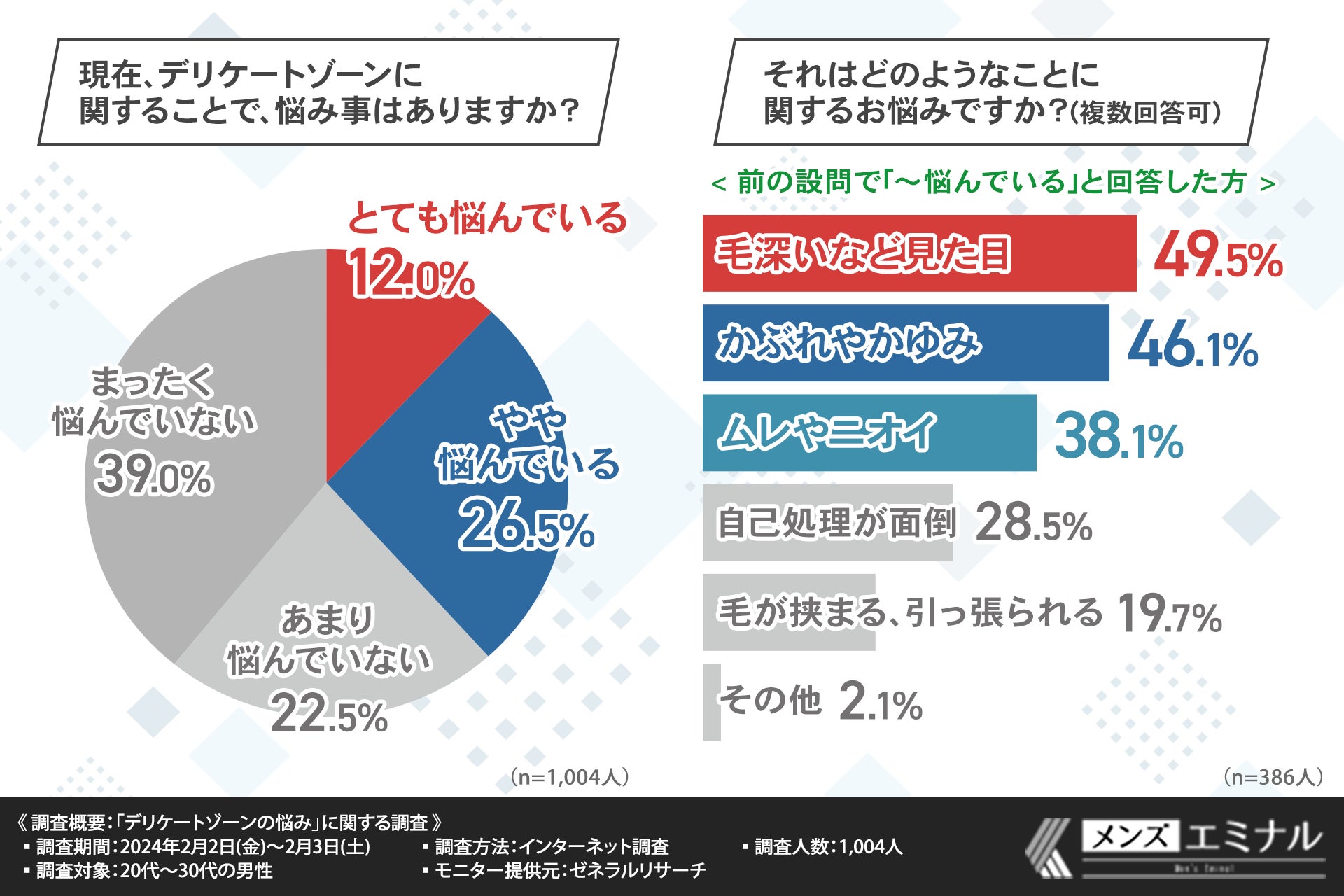そこで今回、メンズ専用脱毛クリニック「メンズエミナル」(https://mens-eminal.jp/lp/?refmedia=31073)は、20代~30代の男性を対象に「デリケートゾーンの悩み」に関する調査を実施しました。