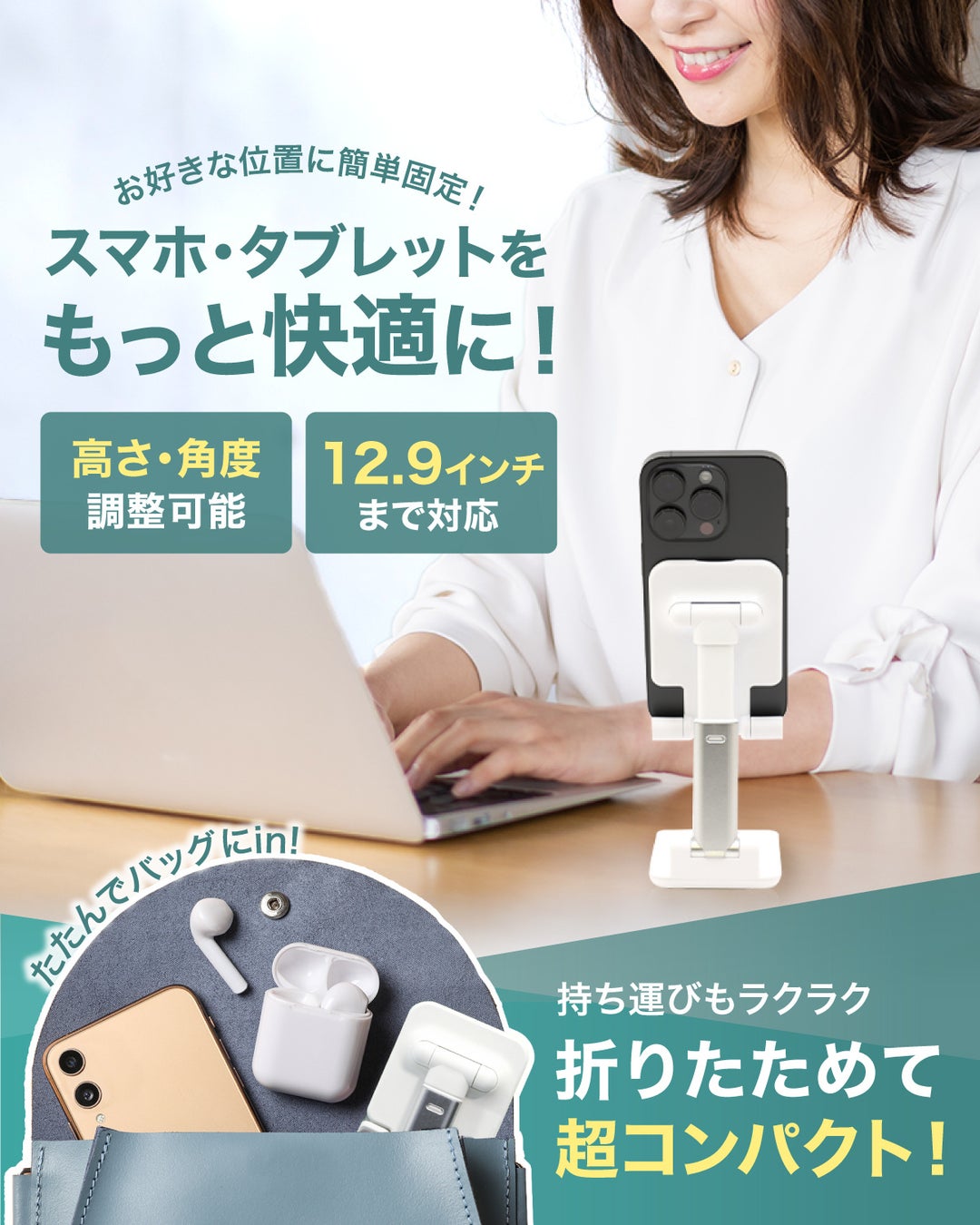 折りたたみ式でコンパクトサイズ!高さ調整・角度調整できるスマホ・タブレットスタンドを発売!