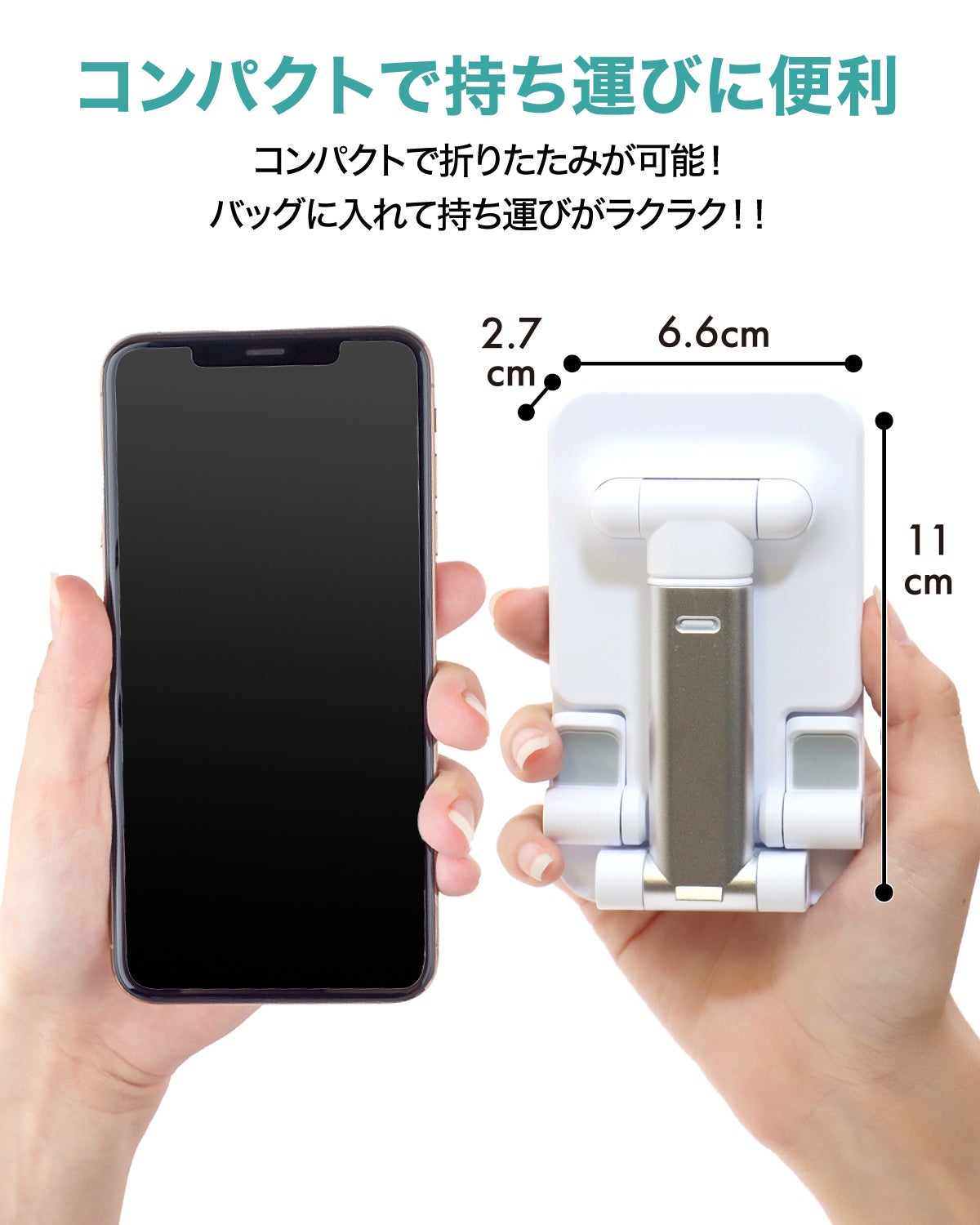 折りたたみ式のスタンドなので、バッグなどにもコンパクトに収納可能。