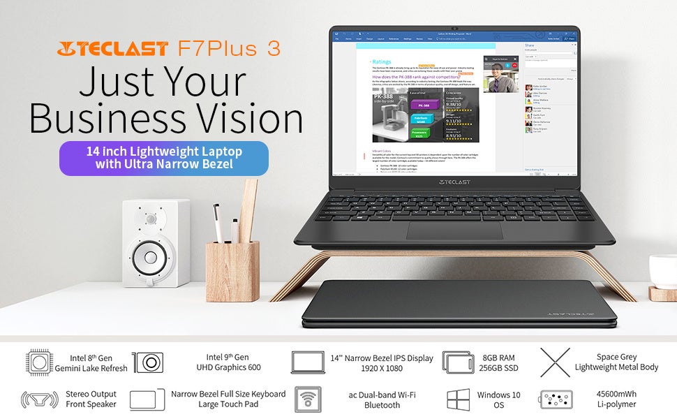 軽量薄型は「F7 Plus3」の利点です。いつでも持ち運びに便利です。大きいディスプレイと自然な色彩表現、迫力ある臨場感を楽しめます。45600mWhのリチウムポリマー電池を搭載して、超長時間の総合使用を可能にし、より良い仕事と娯楽体験を提供できます。それと、デュアルバンドWiFiとBluetooth 4.2、WEBカメラ、1つの標準USB3.0ポートとUSB2.0ポート、およびHDビデオ出力用のMini-HDMIポートが装備されて、さまざまなニーズにお応えします。