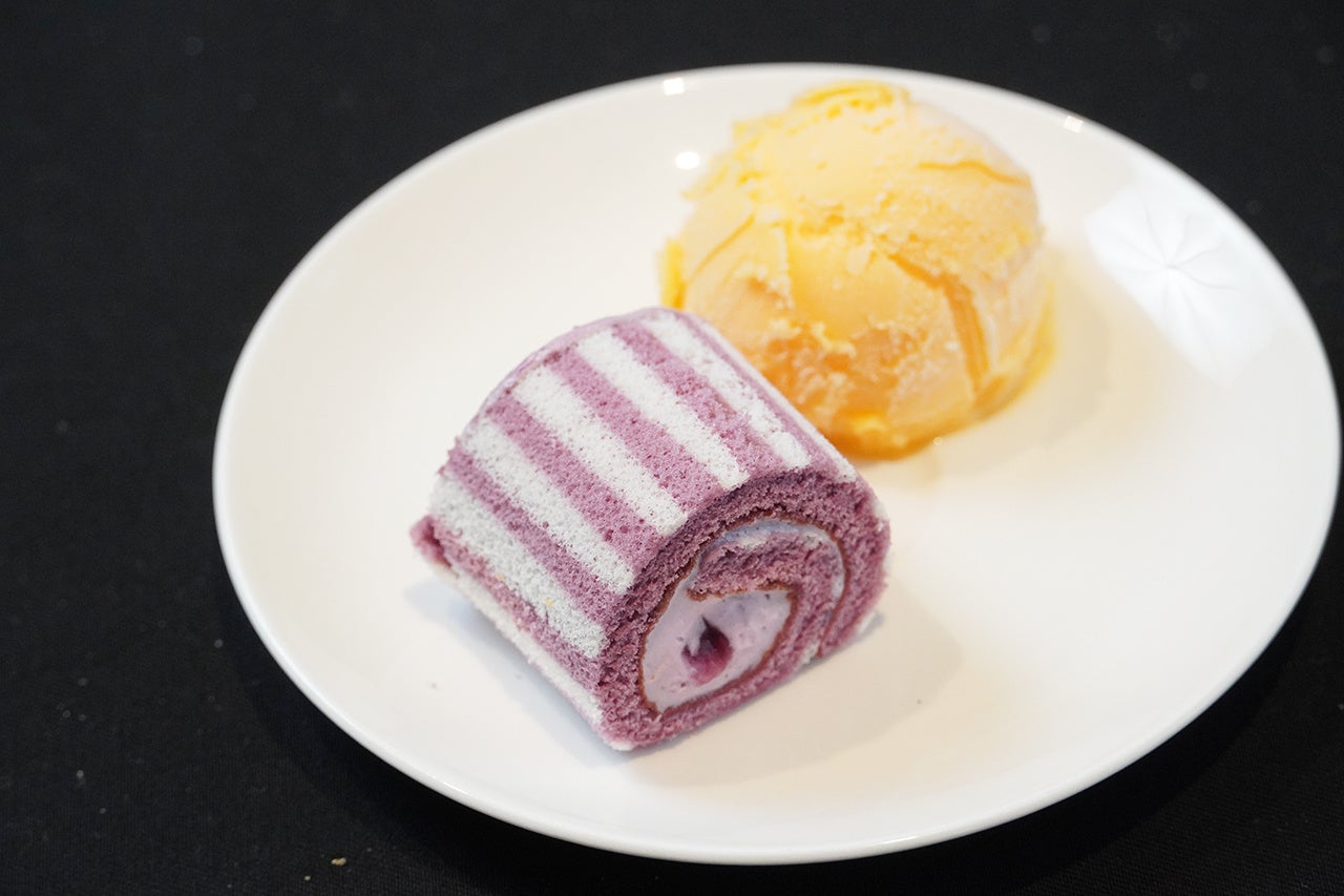 ・巨峰のミニロールケーキ(柑橘ミックスアイス付):550円