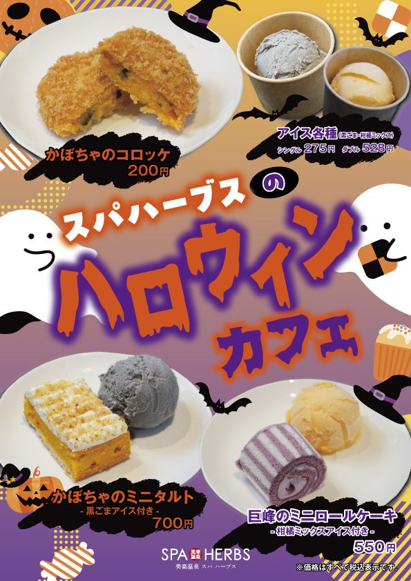 【おいしいハロウィンはいかが?】埼⽟最⼤級のスパリゾート「美楽温泉 SPA-HERBS」が期間限定のハロウィンカフェをオープン!