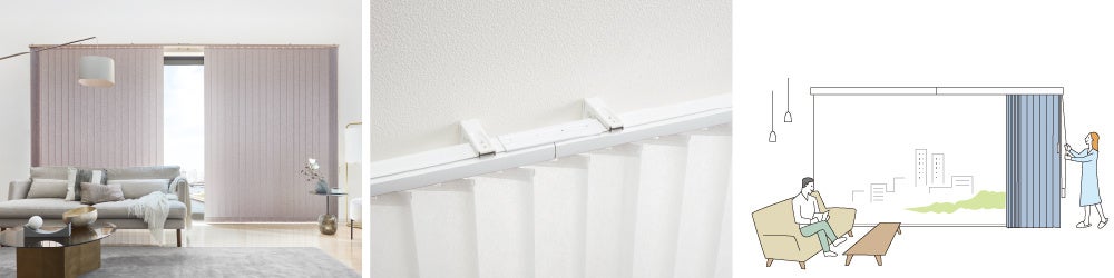 ③タテ型ブラインド「ラインドレープ」の「レールジョイント仕様」を片開きで幅最大6,000mmまで製作可能に!