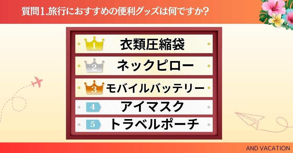 そこで、旅行におすすめの便利グッズを、アンケートで聞き取り調査をしました。ぜひ、チェックしてみてください!