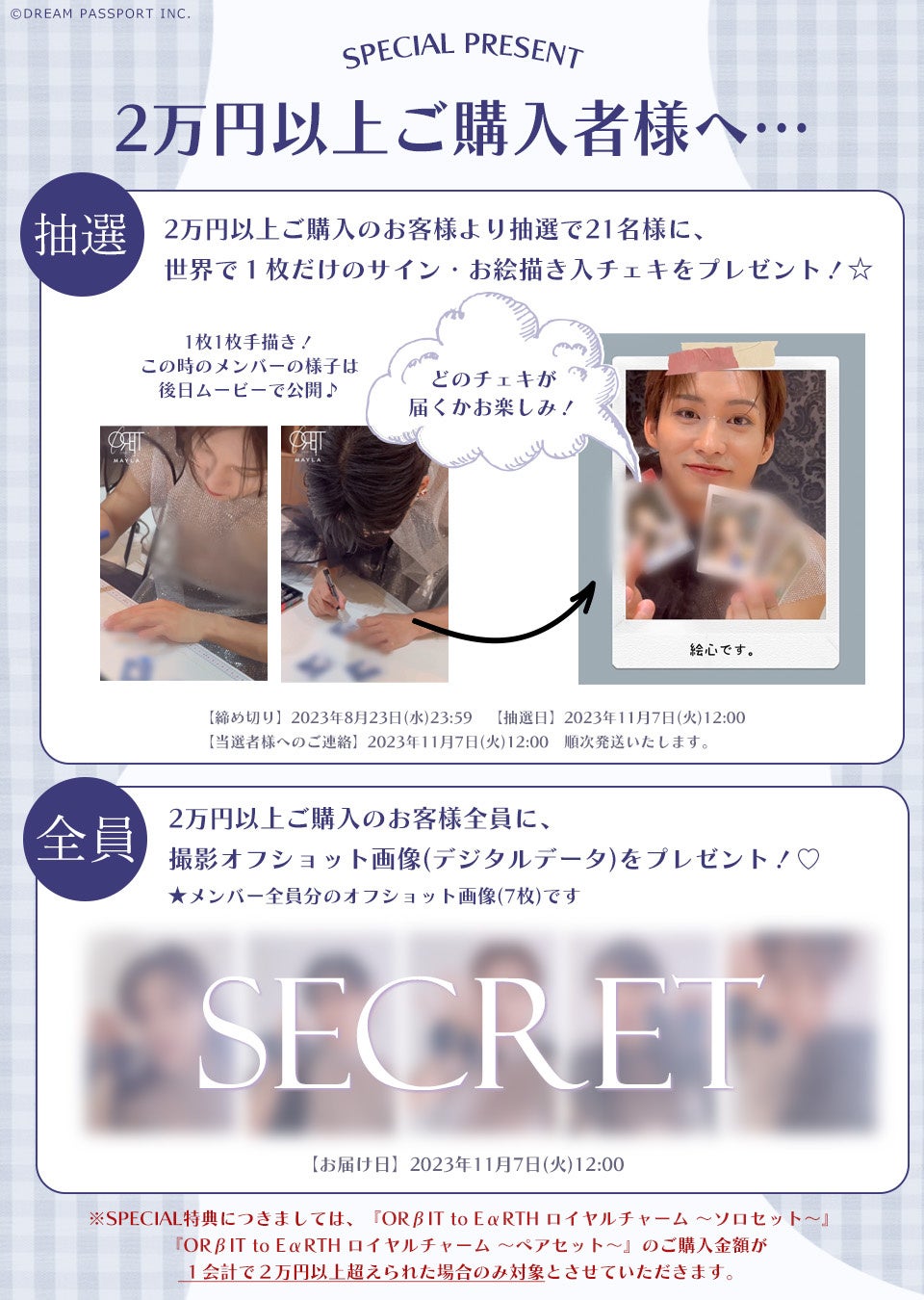 『ORβIT to Eαrth ロイヤルチャーム(ソロセット)』と『ORβIT to Eαrth ロイヤルチャーム(ペアセット)』のご購入金額が1会計で2万円以上超えられたお客様には、スペシャルな特典をお届けいたします!