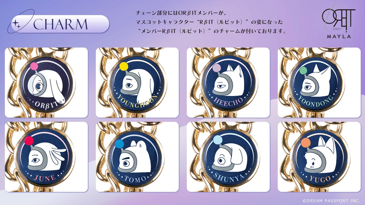 チェーン部分にはORβITメンバーが、マスコットキャラクター“RβIT(ルビット)”の姿になった
