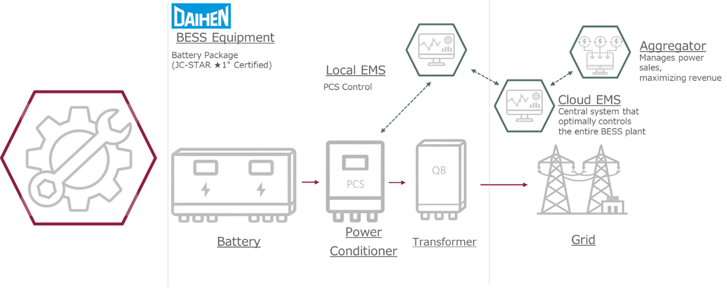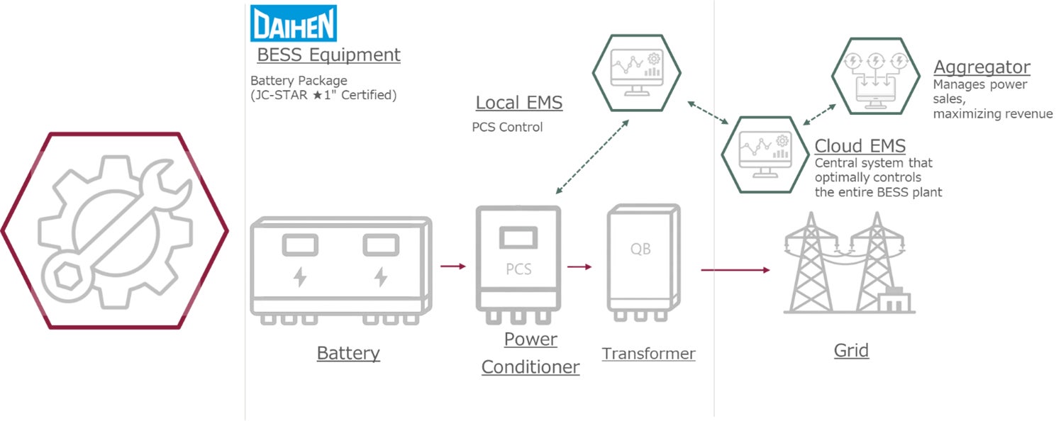 The DAIHEN battery package adopted in this initiative is a domestically produced system in which all major components—including the power conditioning system (PCS), battery storage units, transformers, grid interconnection equipment, and energy management system (EMS)—have been developed in-house. The system has obtained “JC-STAR★1” certification*1. This certification evaluates cybersecurity and operational reliability, and is scheduled to become a mandatory requirement for grid interconnection from April 2027 onward. By adopting this system, the Company ensures high reliability and continuity in preparation for future regulatory requirements. Furthermore, the battery system’s most notable feature is its low-noise performance, enabling operation with minimal impact on the surrounding environment. Combined with its compact design that facilitates ease of transport and installation, this not only reduces soundproofing costs but also expands the pool of viable BESS site candidates—including areas in proximity to residential zones—thereby accelerating development.