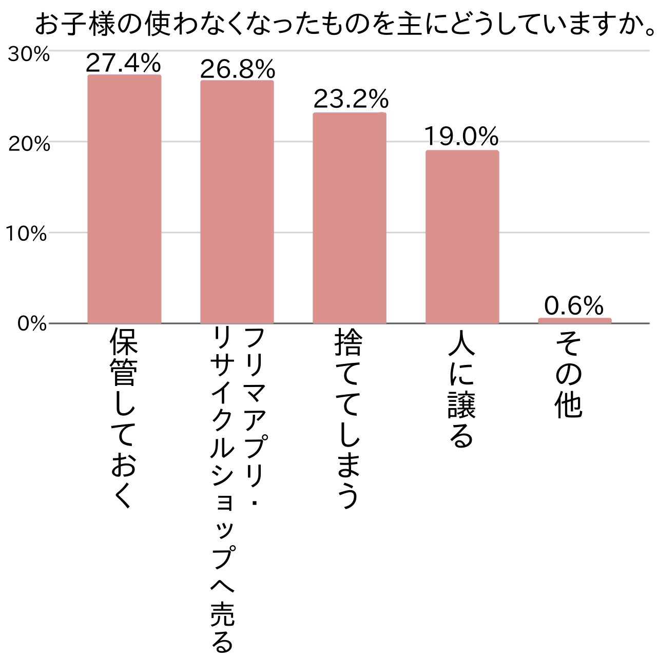 子供の成長とともに使わなくなるものはたくさんあります。アンケートでは、子供が使わなくなったものを主にどのように対処しているかを尋ねました。