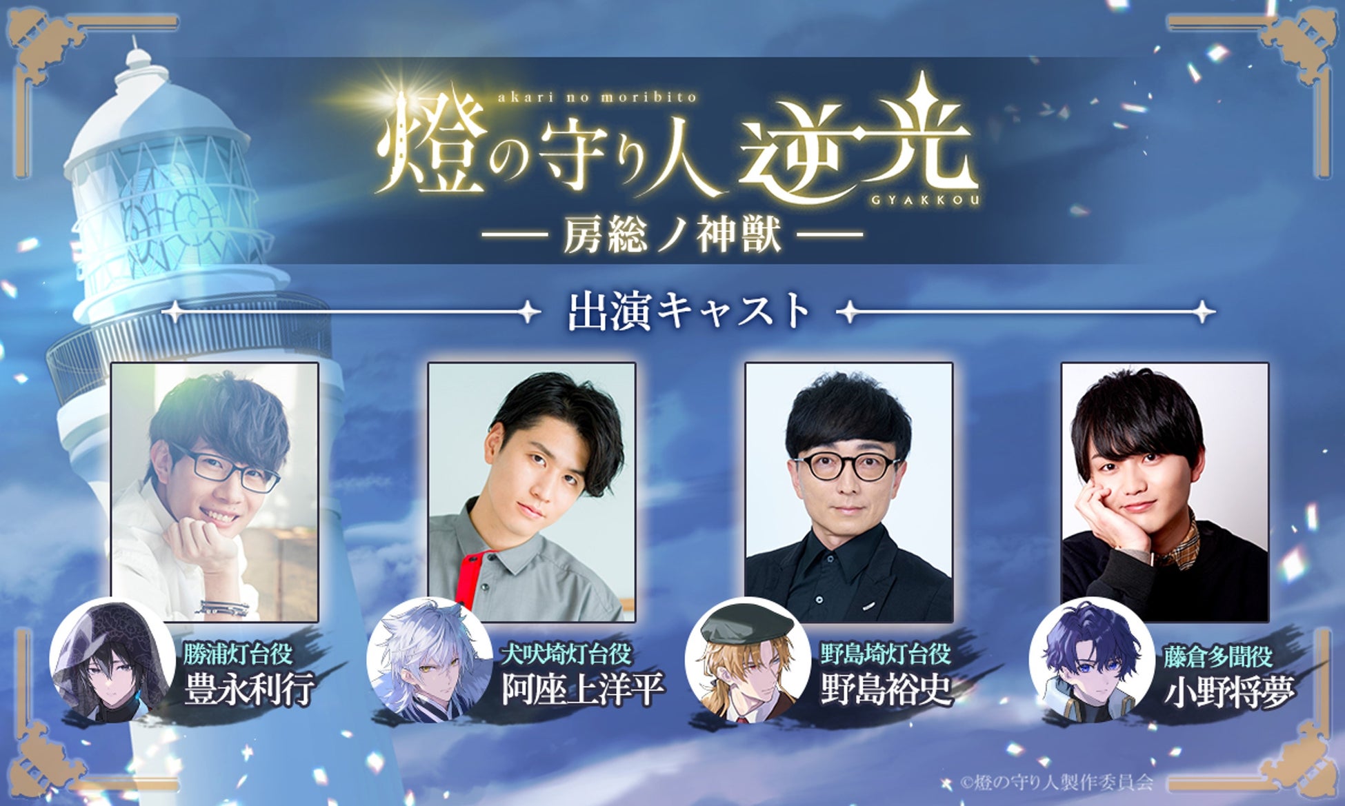 『逆光 第3章 房総ノ神獣』では、阿座上洋平さん、野島裕史さん、豊永利行さん、小野将夢さんなど、豪華声優陣がキャラクターに命を吹き込みます。
