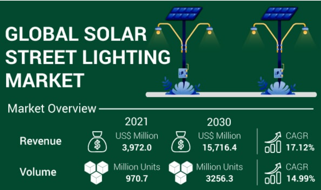 太陽電池式街路照明の世界市場は、2030年までに157億1640万米ドルに達すると推定されています。この市場は、予測期間中に17.12%のCAGRをリストアップすることが予測されています。