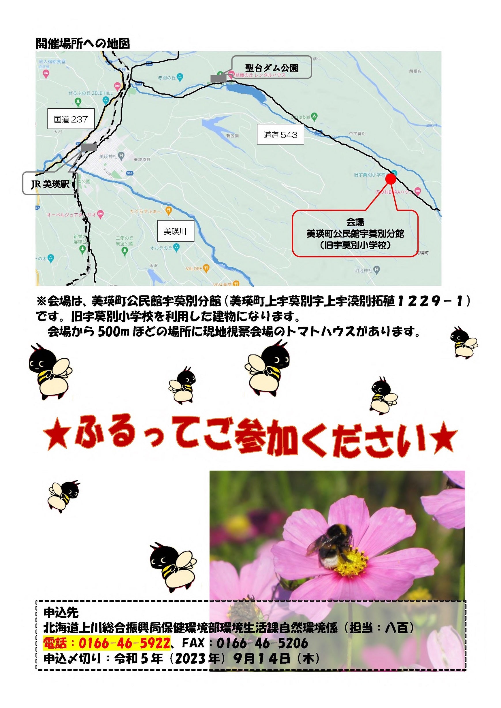 野外に定着したセイヨウオオマルハナバチの防除を担う市民、団体と農業関係者の相互理解を深めるため、次のとおり勉強会を開催します。ふるってご参加ください!