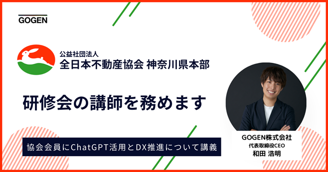 電子契約等ワンストップの不動産売買手続き基盤「不動産売買DXX *プラットフォーム Release(レリーズ)」の開発・提供等を展開GOGEN株式会社(本社:東京都港区)の代表取締役CEO:和田 浩明が、2023年12月15日(金)に開催される公益社団法人 全日本不動産協会 神奈川県本部主催の研修会の講師を務めます。